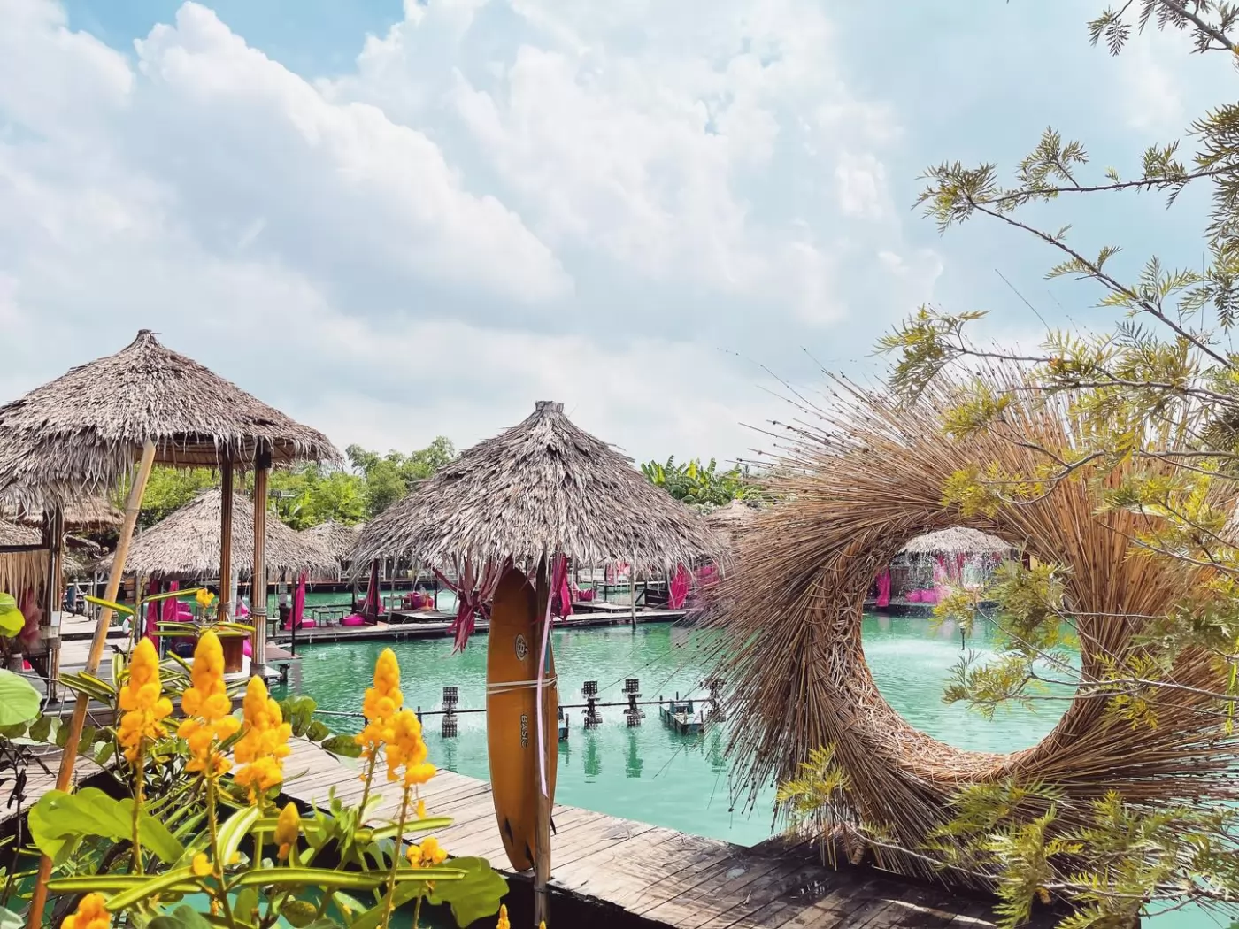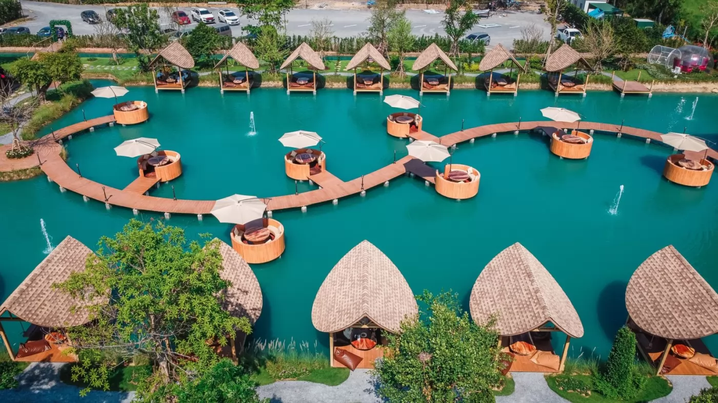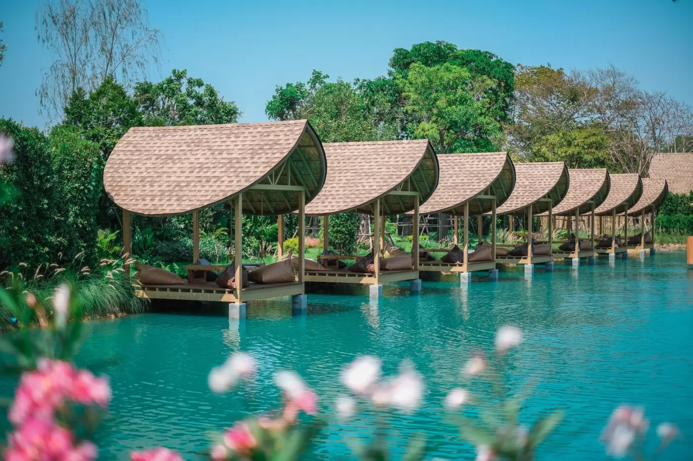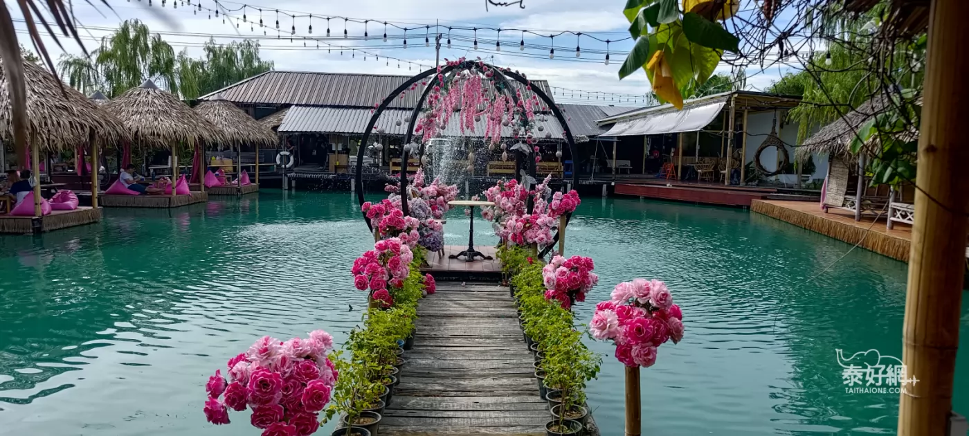 被台、泰網紅捧為泰國版的小馬爾地夫!在綠意盎然的田野中央,利用超夢幻湛藍人造池塘、泰式風格的木屋,打造出的美景,自 2021年開業以來,人氣始終居高不下的網美咖啡廳!