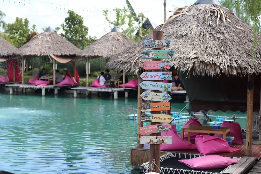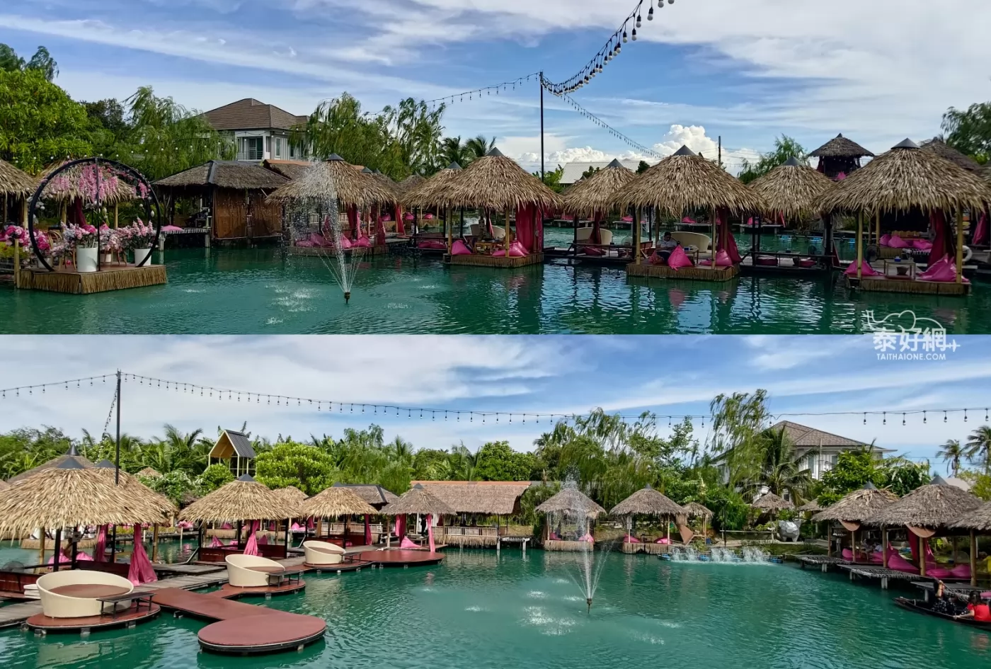超夢幻的粉藍色大池塘,加海島風格的露天涼亭,在這裡享受一頓熱帶風情的美食,給人滿滿的度假感,也難怪被譽為泰國版的小馬爾地夫!