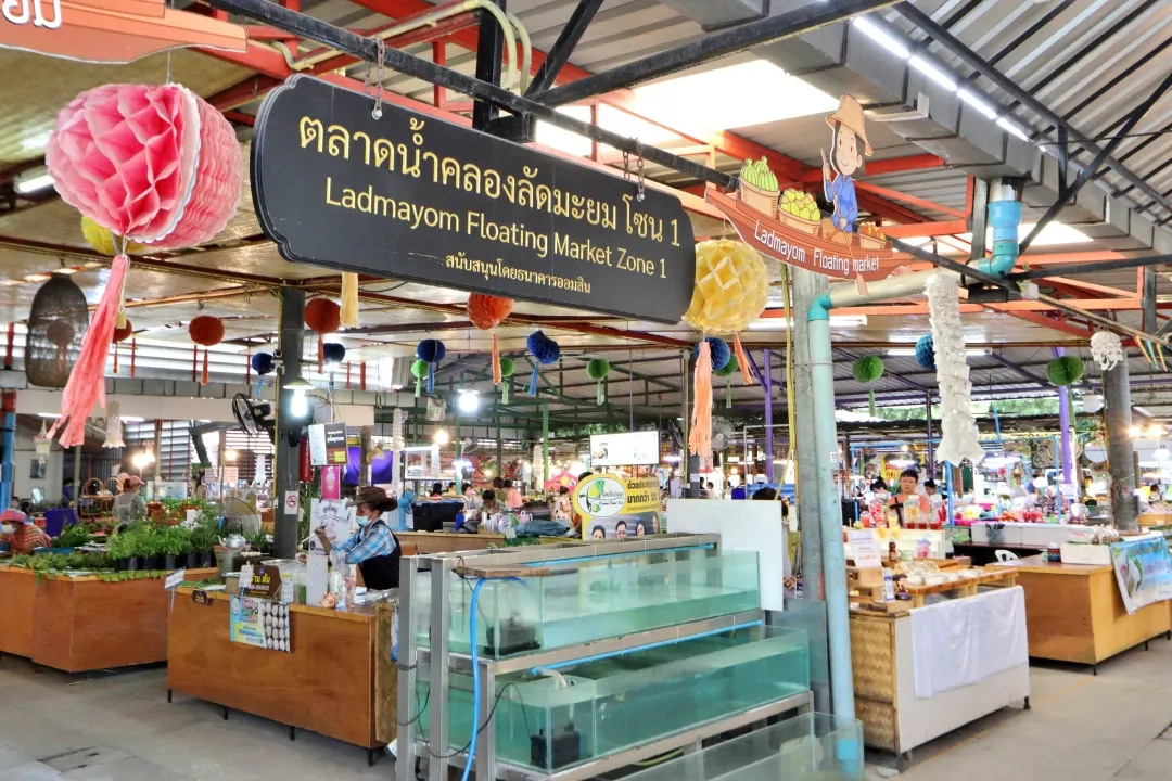 空叻瑪榮水上市場(Khlong Lat Mayom Floating Market/ตลาดน้ำคลองลัดมะยม),座落的運河很窄,只有數條船停在一座小橋下的河岸邊,算不上真正的「水上市場」,更確切地說,應該是河岸市場,勝在其優越得多的地理位置,能提供更多純正的泰國體驗,在眾多的旅遊指南中評價頗高。