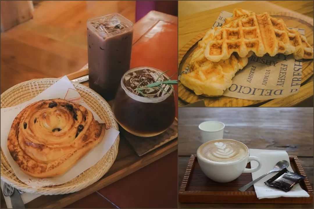 提供的菜單項目豐富,包括甜點、麵包、早午餐,從正餐到下午茶、咖啡都有,價格也不貴,甜點麵包約55-95銖,美式(熱60、冰70銖),拿鐵(熱70、冰80銖)喝起來順口。冰巧克力1杯80銖。