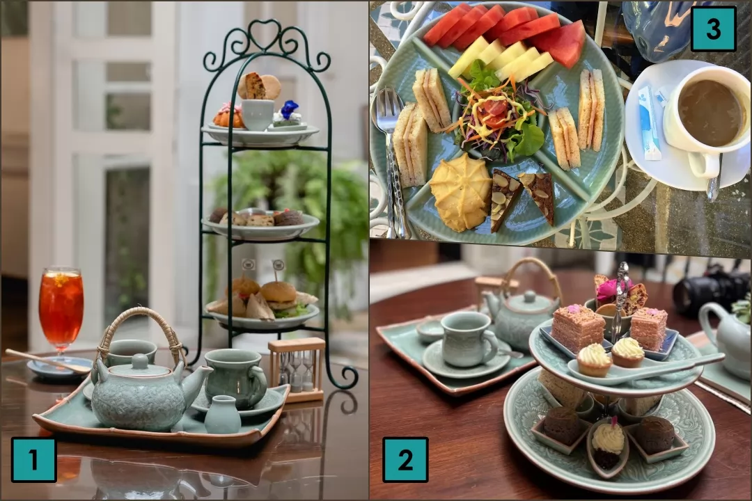 提供飯類、義大利麵等泰菜、西餐,更有All Day Breadfast及下午茶Tea Set,價錢不太貴,古典優雅超舒適的環境,適合來飲下午茶和咖啡。2022年,個人下午茶套餐(圖3),250銖(加10% 服務費),很豐富,餐點很好吃!雙層下午茶套餐(圖2),395銖;三層下午茶套餐(圖1),595銖。