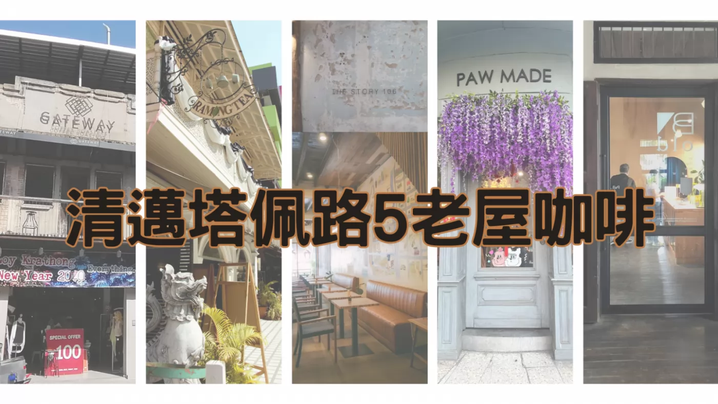 清邁塔佩門(ประตูท่าแพ)往舊城外延伸的塔佩(Tha Phae Road)路,過濱河後改叫者倫門(Charoen Muang Road)路,許多老屋掀起翻新為咖啡店風,介紹其中不同風格的5家,喜歡,有空就去坐坐!