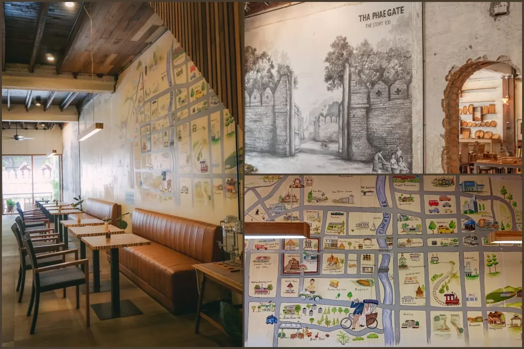 1樓獨特之處在於,牆壁有塔佩門周邊地圖的畫作。