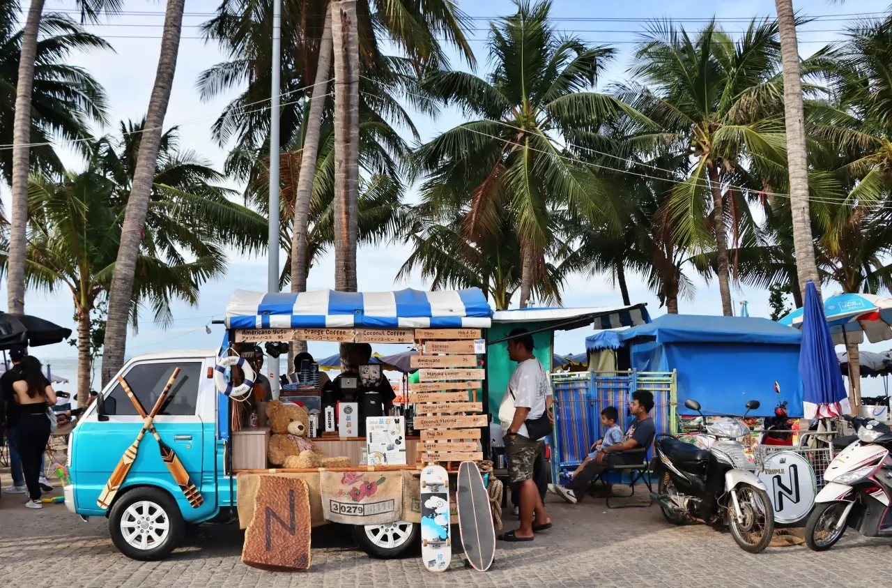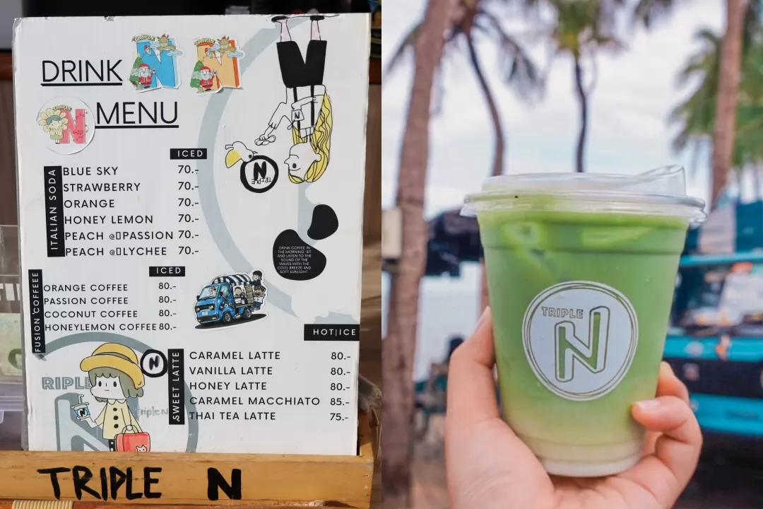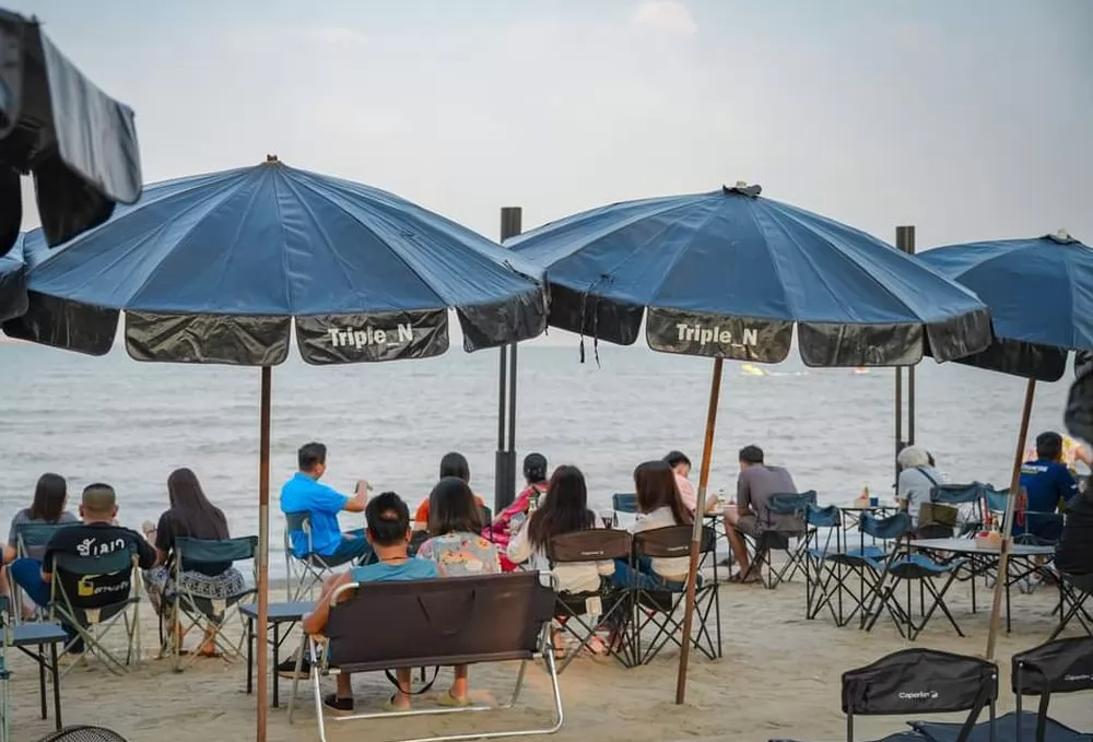 Triple N 是Bang Saen 海灘旁的小咖啡攤,用小貨車改裝,背後的沙灘擺放10多處露營用的折疊座椅,往往是座無虛席。