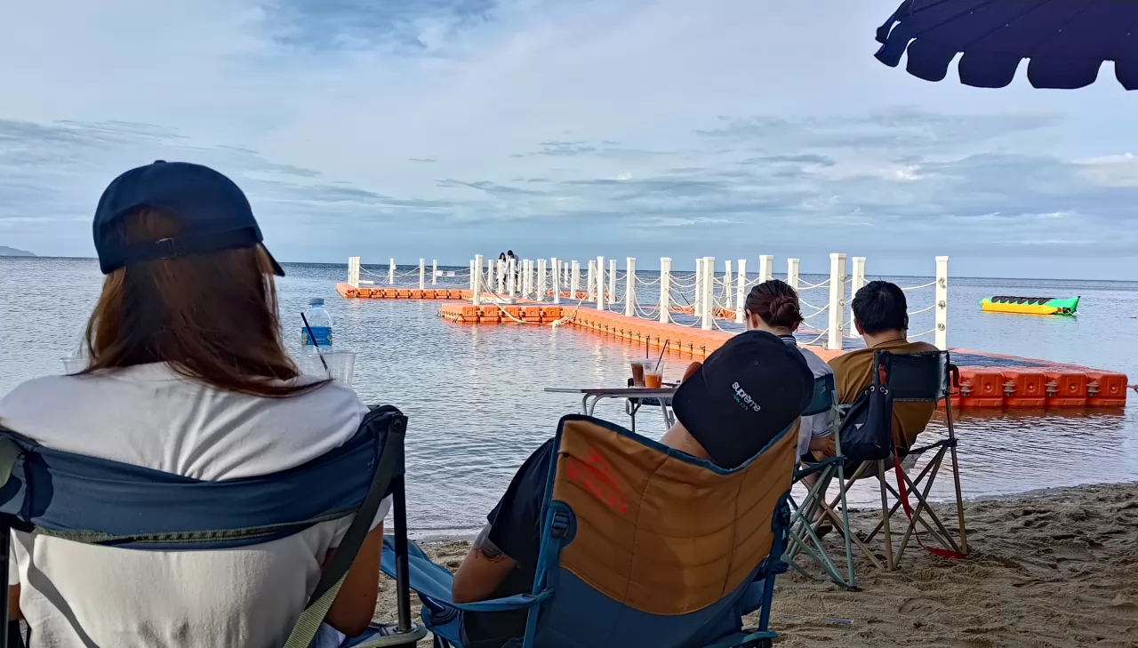 海灘前有遮陽傘和海灘椅,可以戲水,也可以坐上來曬太陽或看海景。