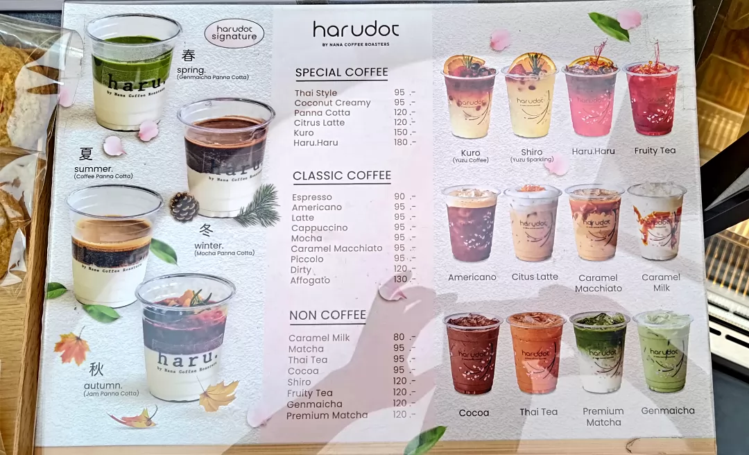 這裡的咖啡,保有NANA Coffee的品質和特色,有包含「春夏冬秋」四季的招牌咖啡,值得一試,價位也差不多,從95到180銖。