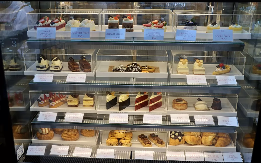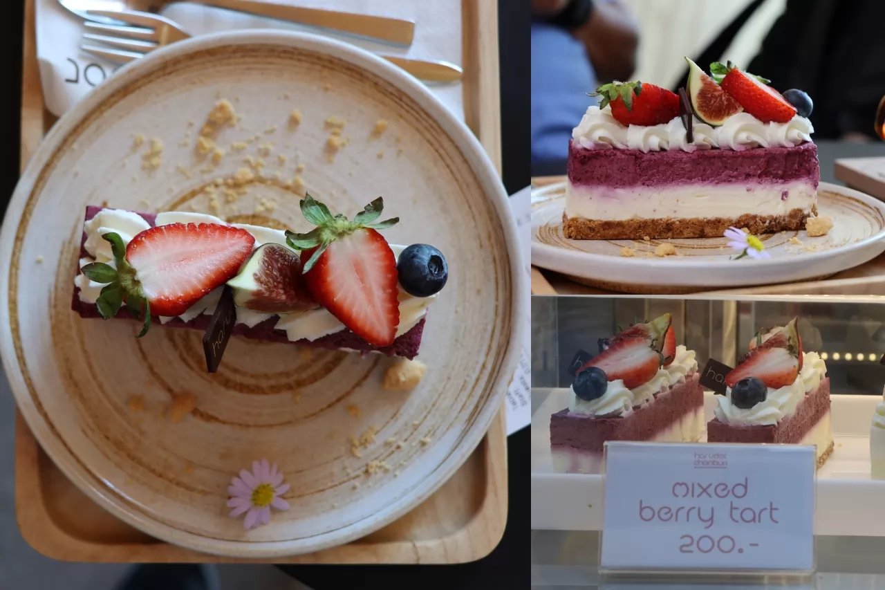 提供豐富多樣精緻美味的各種蛋糕,平均1塊在160-180銖之間,這款Mixed berry tart,水果的酸與蛋糕的甜混合出的美味,200銖。