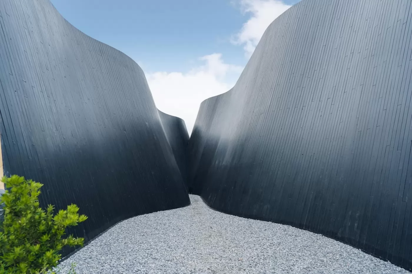咖啡店的空間以3個簡練黝黑的山形空間組成,大型猴麵包樹(baobab)彷彿突破屋頂的屹立庭園,賦予咖啡愛好者一處新鮮的目的地。