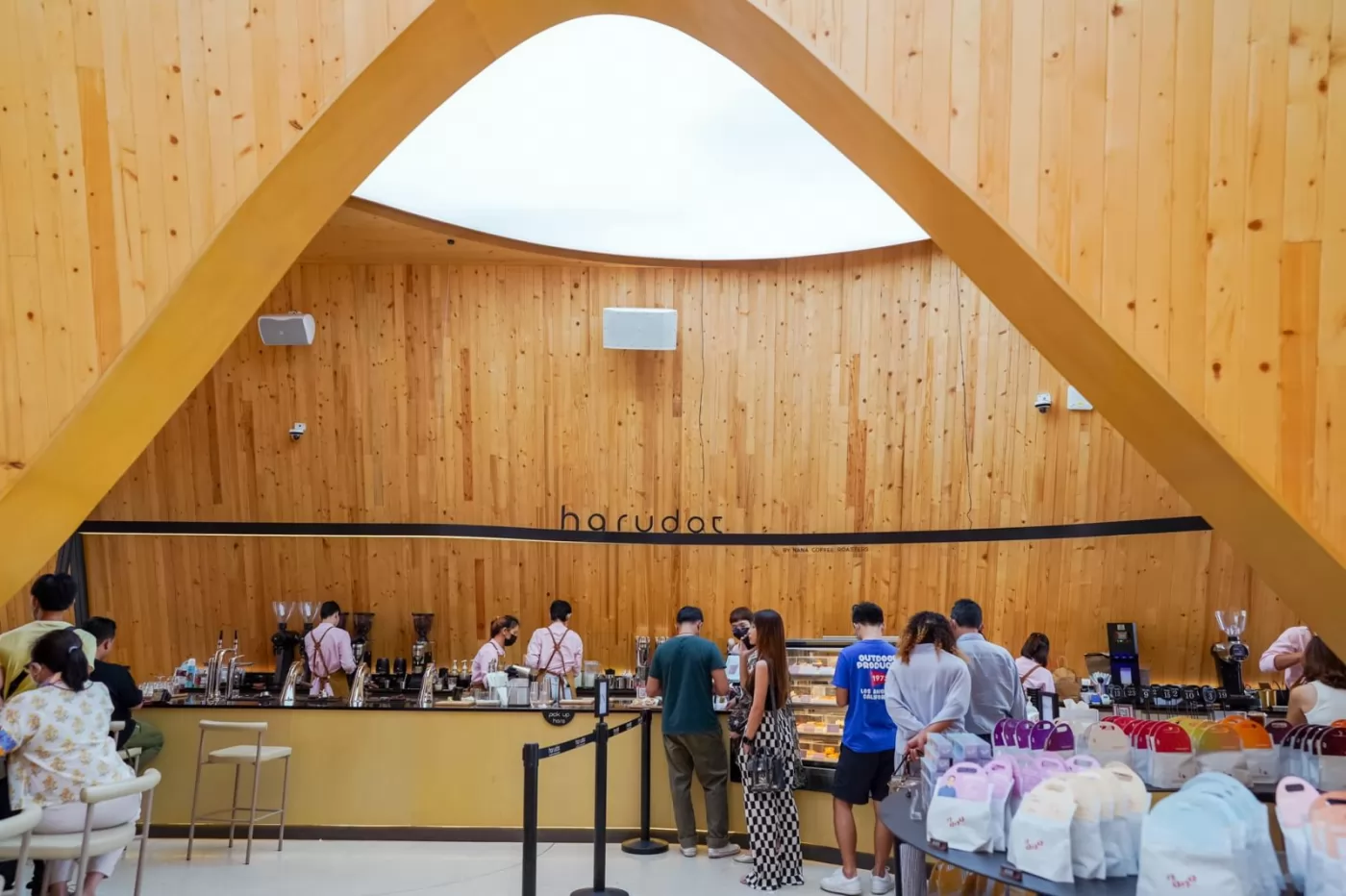 春武里(Chon Buri)2023年新開的咖啡店—Harudot by Nana Coffee Roasters,黑色山形外觀令人一眼難忘,成為全泰國最火紅的名店。