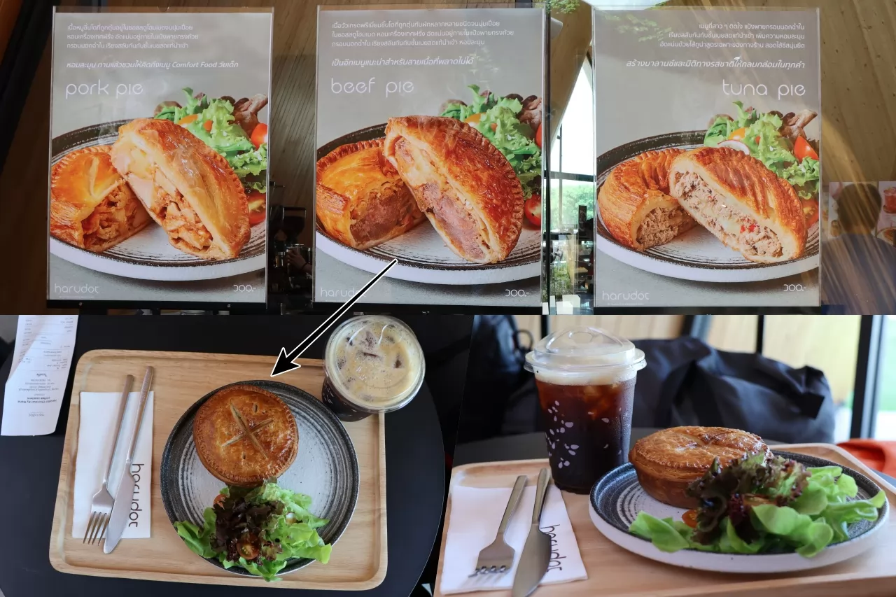 入口處有推薦的3大派—豬肉、牛肉和鮪魚派,1份300銖,雖然價位偏高,但用料厚實,吃得出牛肉的美味,好吃!
