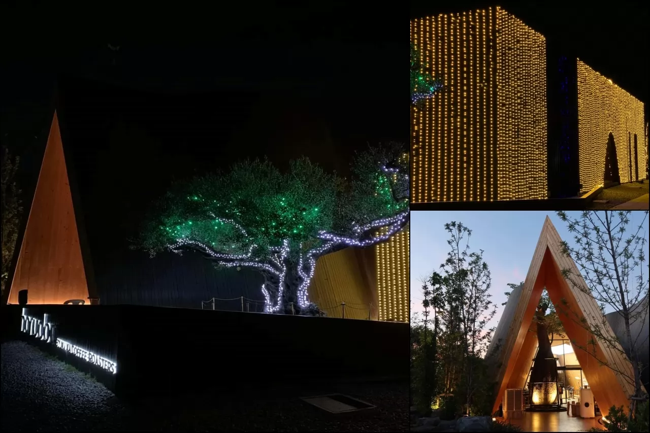 突出的黑山外觀,室內則以自然溫暖的松木形成對比。樹木的半露天空間有開口並延伸至其他室內空間,創造一個溫暖、柔和的照明方式,非常寬敞、氣派,採用現代日式設計風格裝修,整體空間更具連續性。