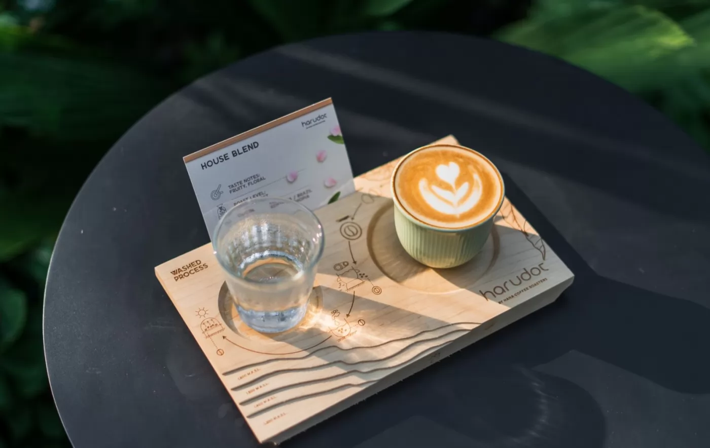 NANA Coffee Roasters 深受日本文化影響,Haru 的日文是「春天」,巧合的是,春武里府的地名有「春」,Dot 則象徵「起點」,設計為店名與 Logo 。