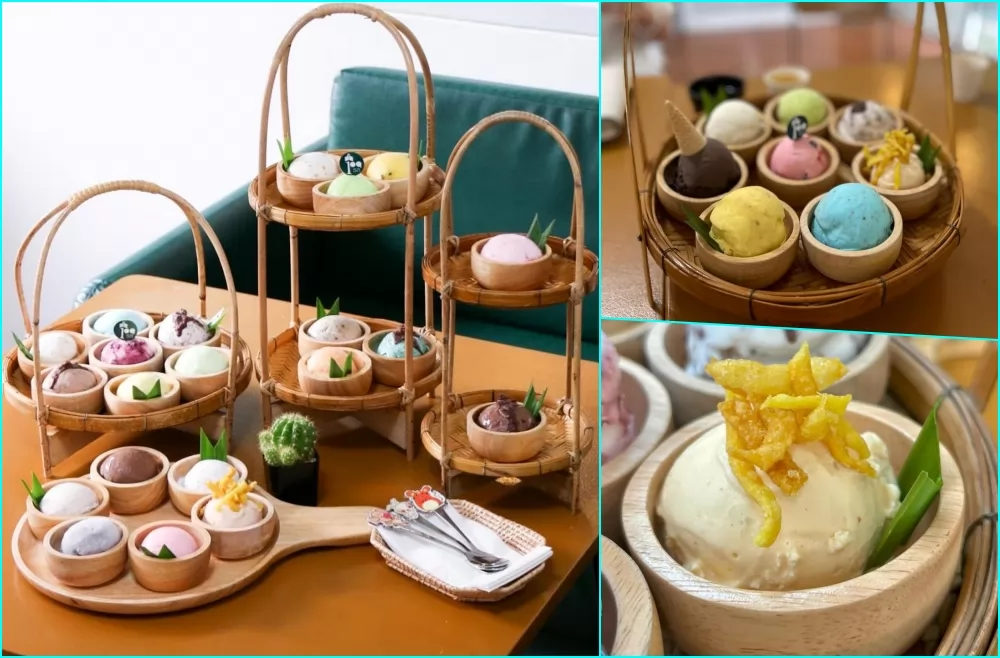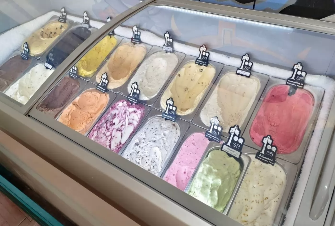這裡只賣冰淇淋,上百種口味,有一般口味,如巧克力、香草、以及用新鮮水果製成的口味,少糖帶來新鮮感。還有餐廳的招牌口味,以及特別的北方食品風味,如考摔( Khao Soi )、割皮青辣椒(Nam Prik Noom)風味。