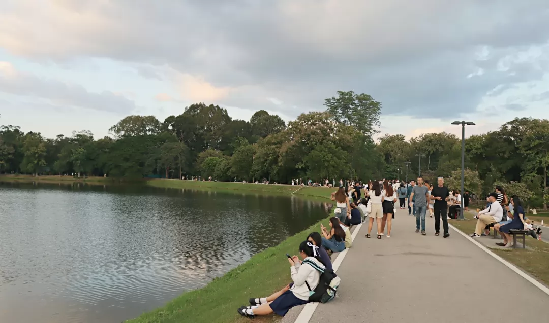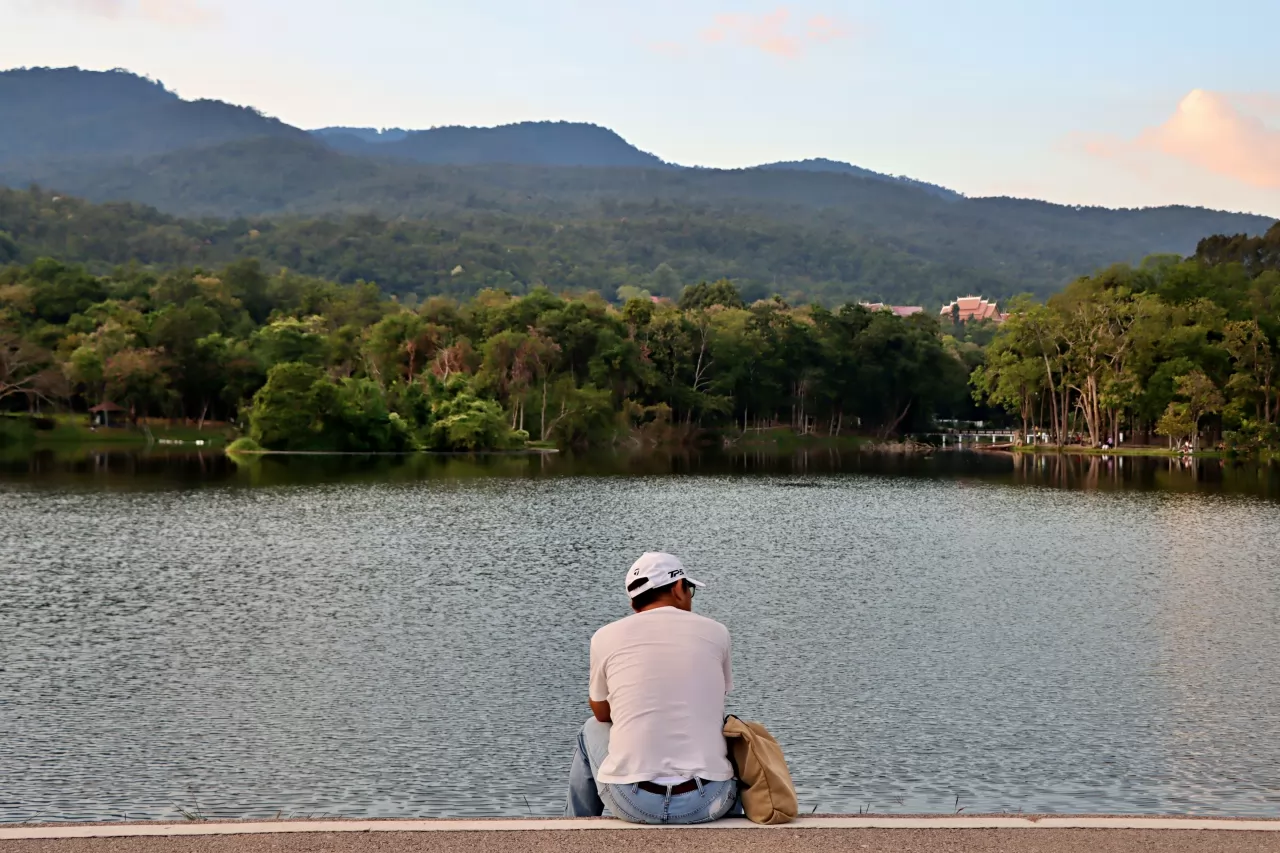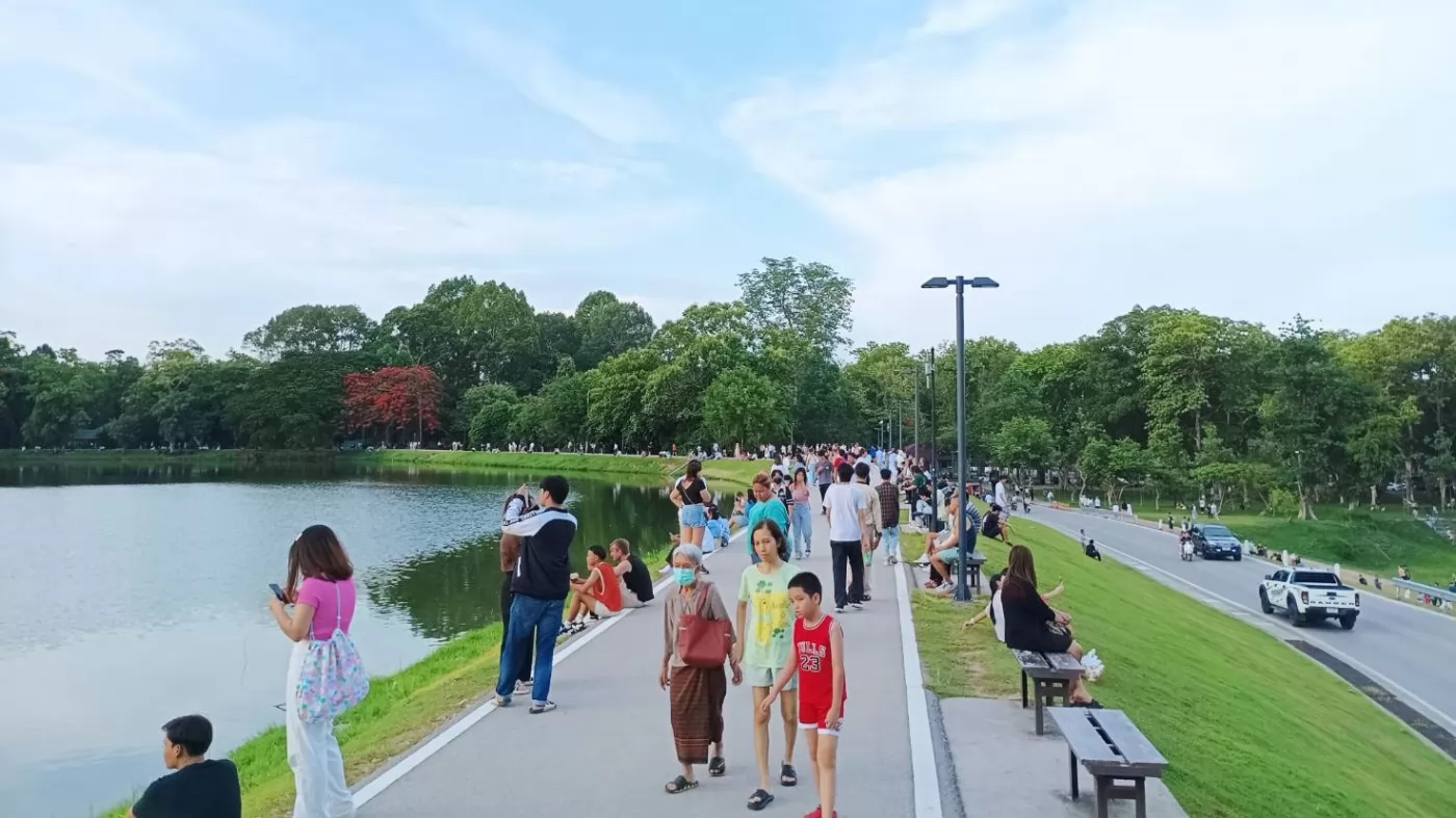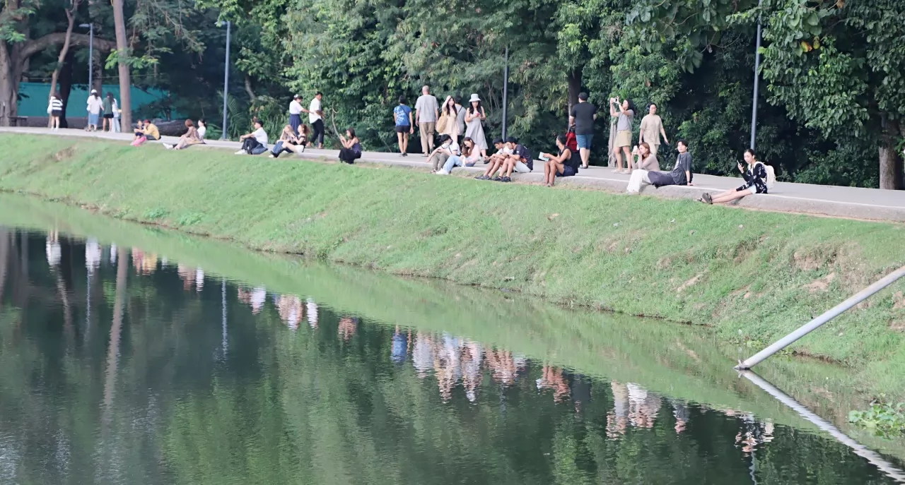 清邁大學水庫(Ang Kaew CMU/อ่างแก้ว, มช. เชียงใหม่)傍晚時刻是打卡散步的熱區。