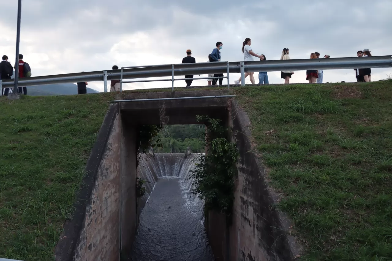後來這裡變成公共空間, 包括鍛鍊場在內有 2 區,壩脊的區域, 人們喜歡到這個角落拍照,加上平靜的水面倒映著樹影美景。