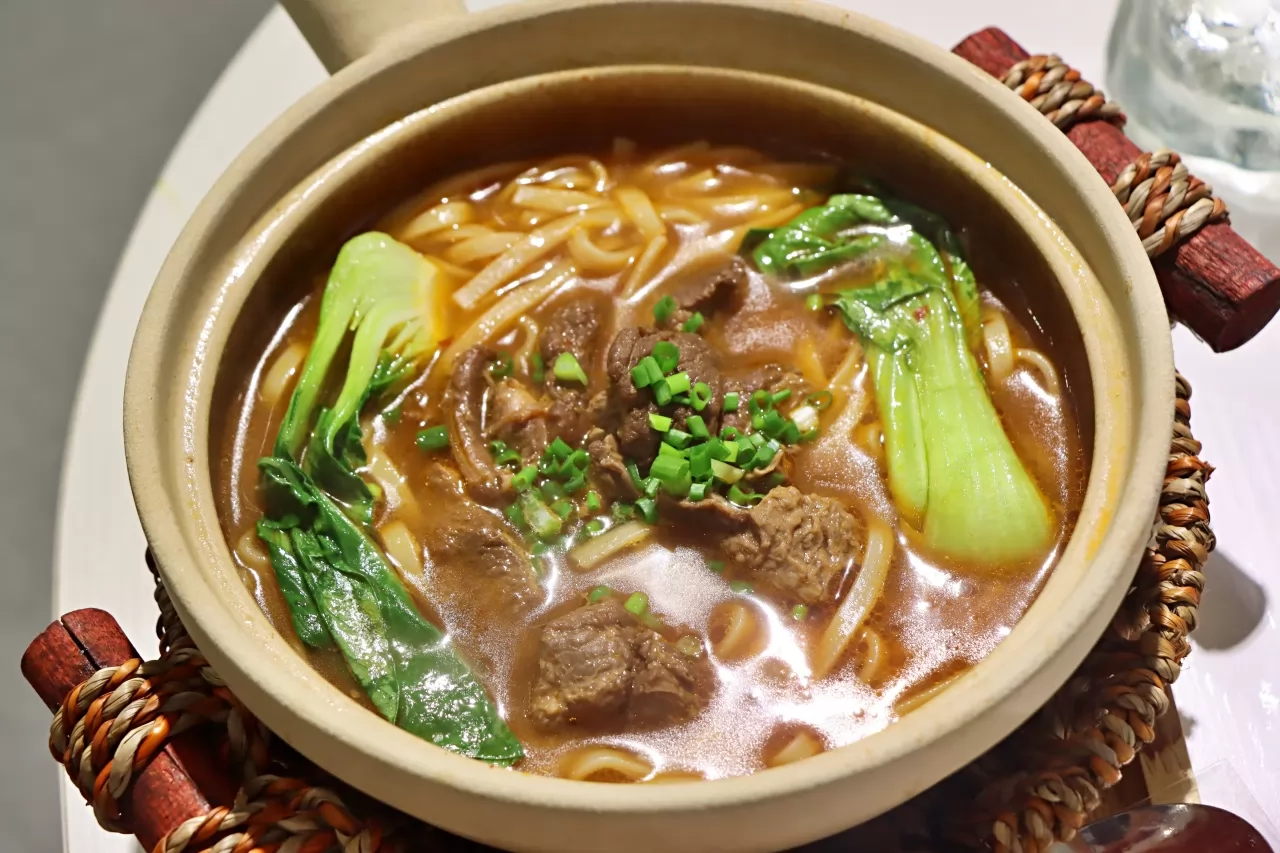 牛肉麵—台灣牛肉麵很有名,這裡以煲仔麵的方式推出。