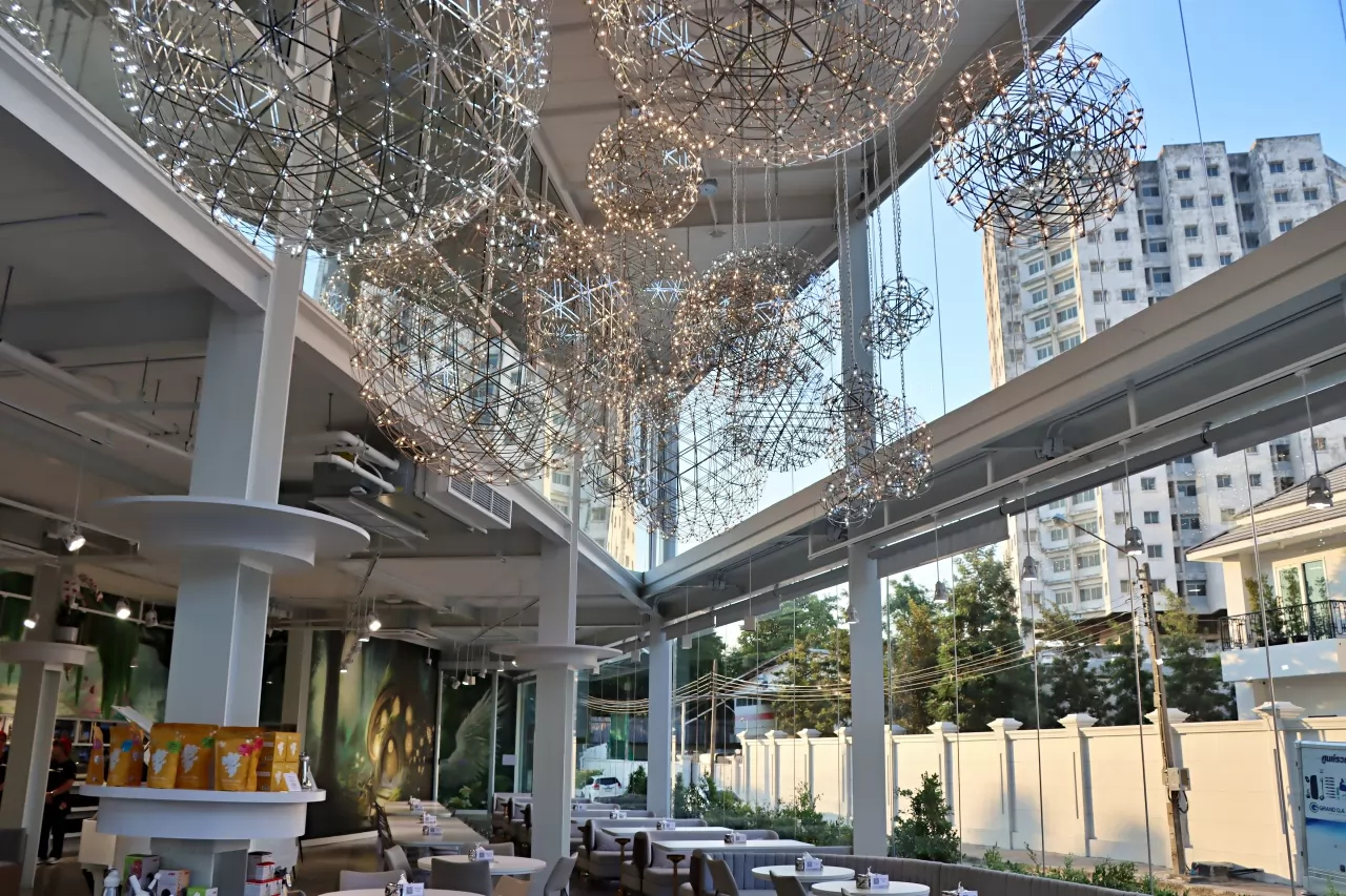 當夜色來臨時,挑高的空間裝飾有大、小的銀、黃色的星球,氛圍又不一樣,是與家人、朋友聚餐的好地方。