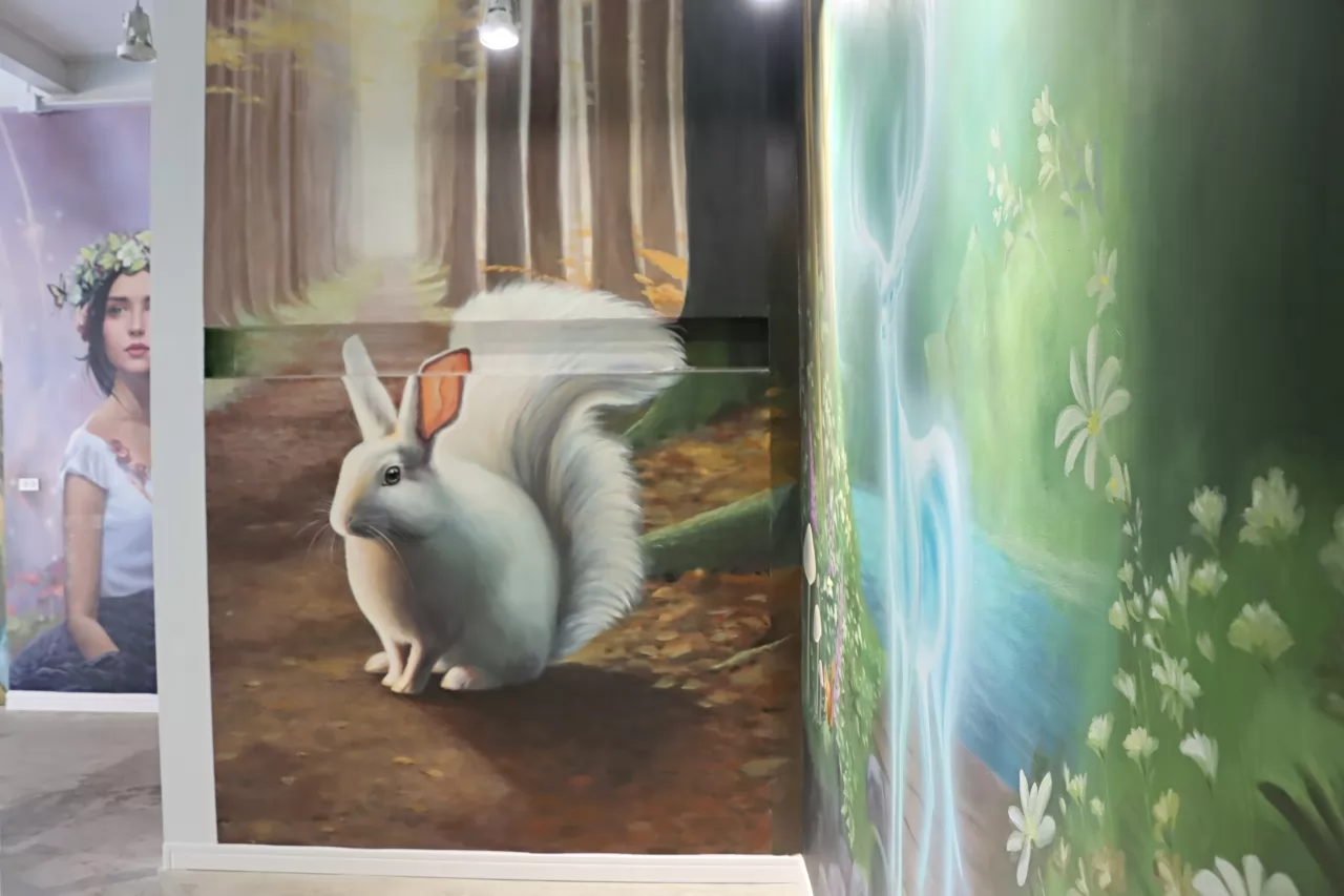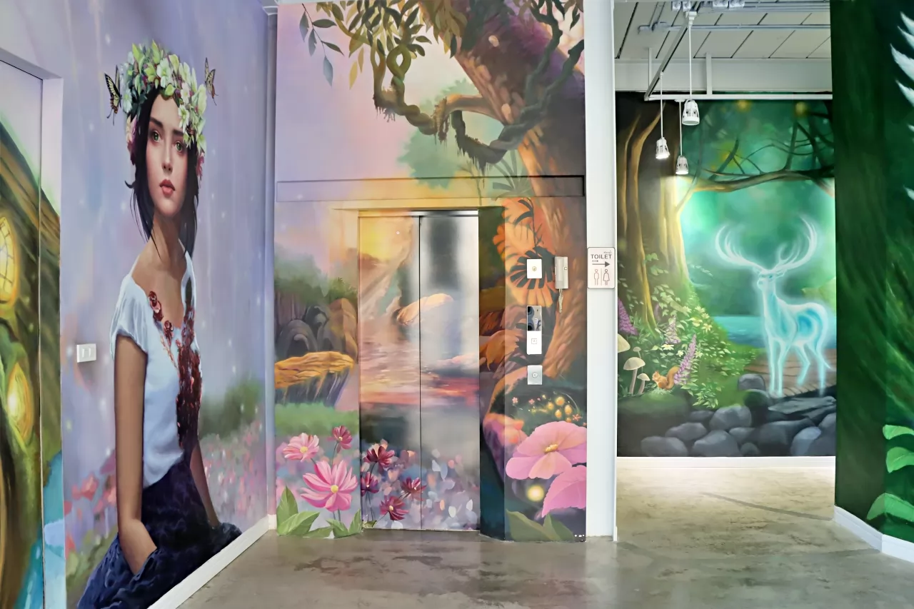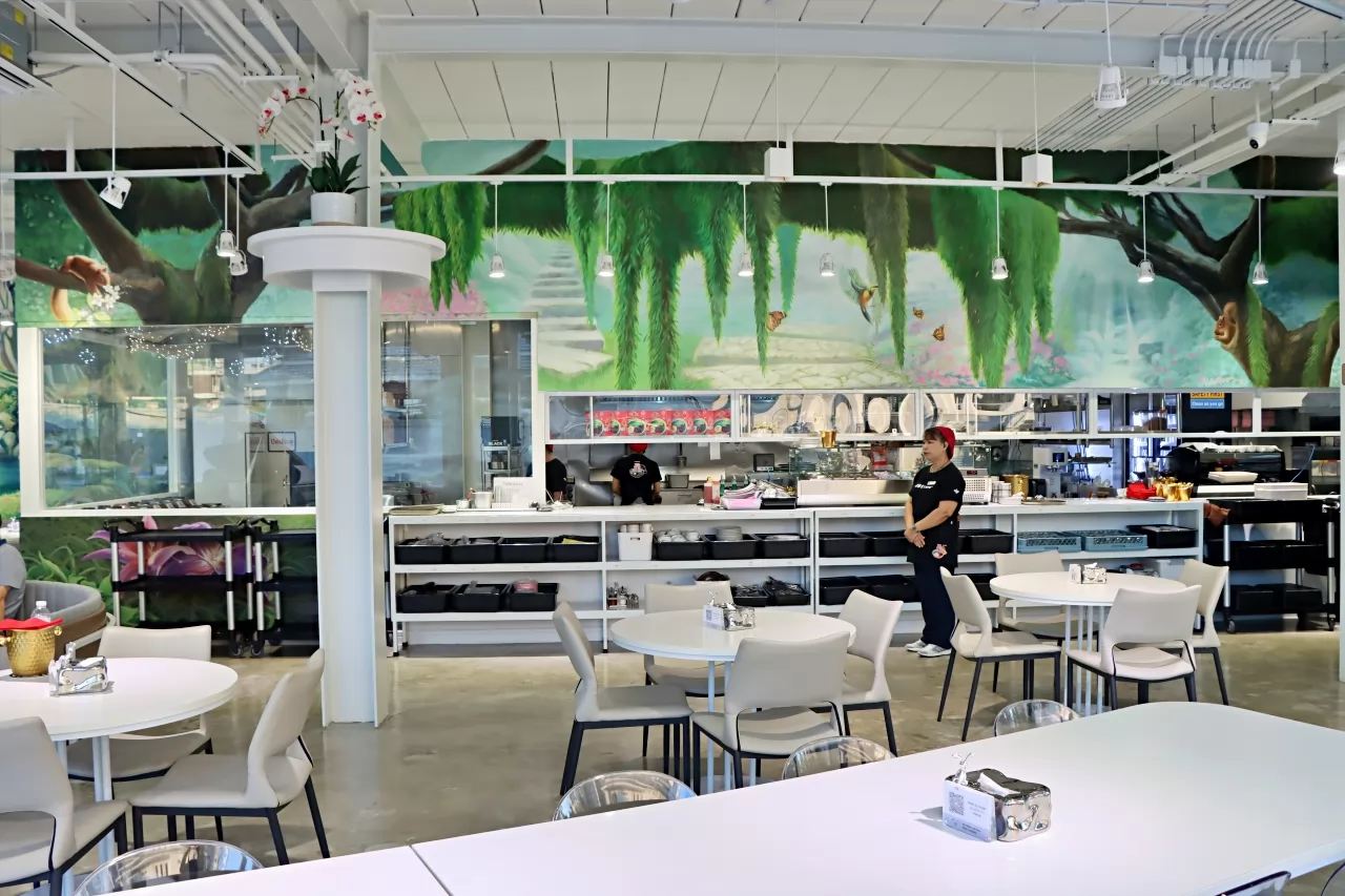 旗艦店至少有以下5點特色,首先就設計來說,最吸晴的當屬橫貫牆壁的壁畫—講述的是美麗少女進叢林探險的歷程,從餐廳延伸到外面的洗手間,最終白色展翼的翅膀,留給客人打卡拍照。