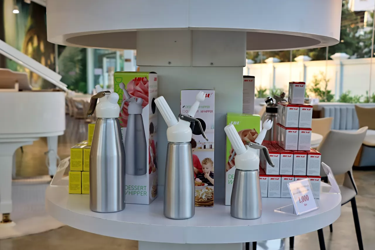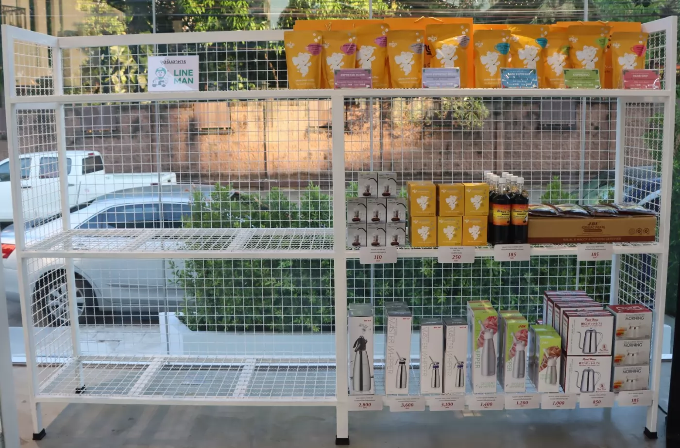 店裡還賣台灣的珍珠、 紅糖、清萊的烘焙咖啡、 鮮奶油和鮮奶油製造機。