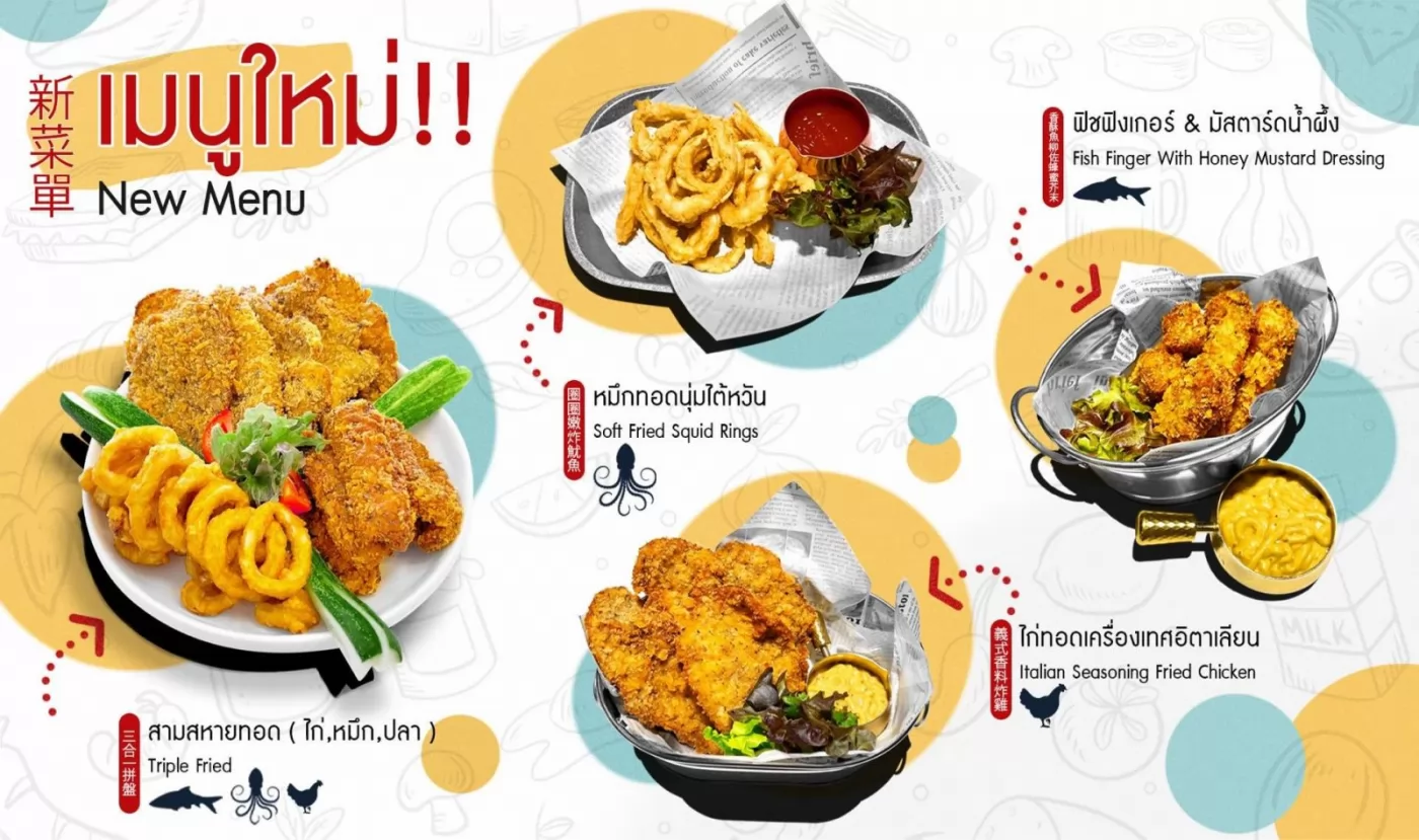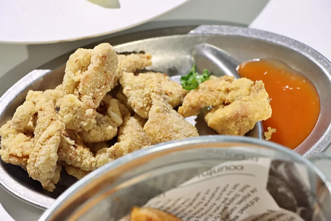 炸雞—西式的義式香料炸雞、圈圈嫩炸魷魚、香酥魚柳佐蜂密芥末。