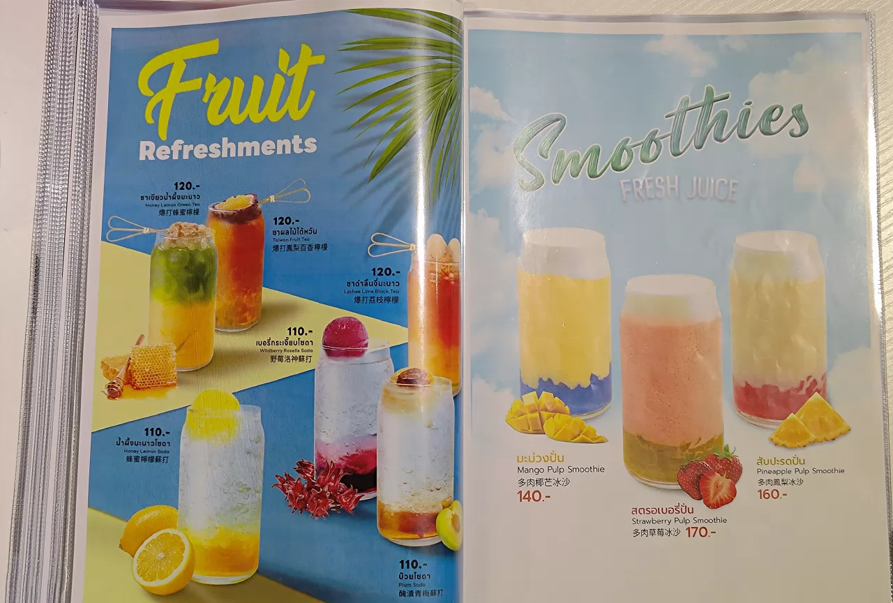 咖啡飲品—公司贊助MCD在泰北設咖啡烘焙廠,這裡的咖啡品質有保障,值得推薦,另外還有水果和氣泡飲料。