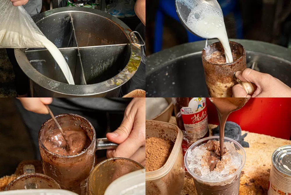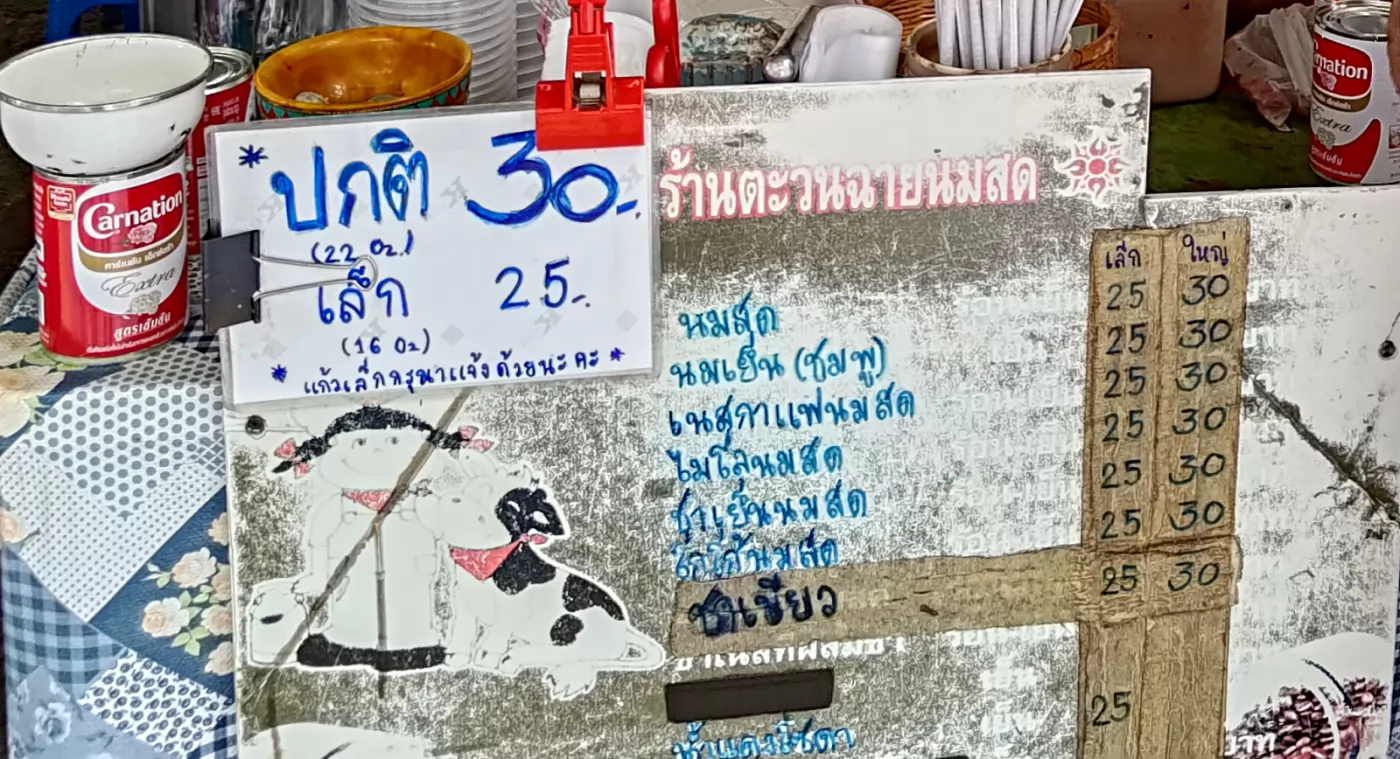 Tawanchai Fresh Milk(ร้านตะวันฉายนมสด),如果不注意,很容易錯過的小攤位,賣黑可可,人氣超高!常常得排隊, Silom地區上班族和摩托車騎士的最愛。