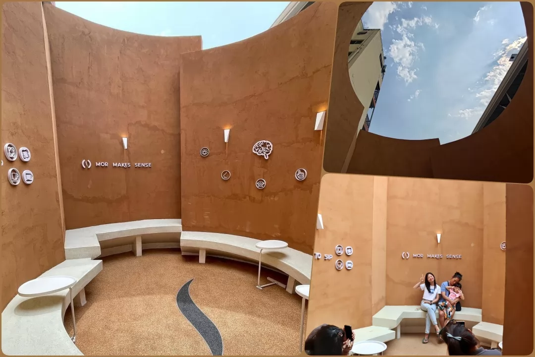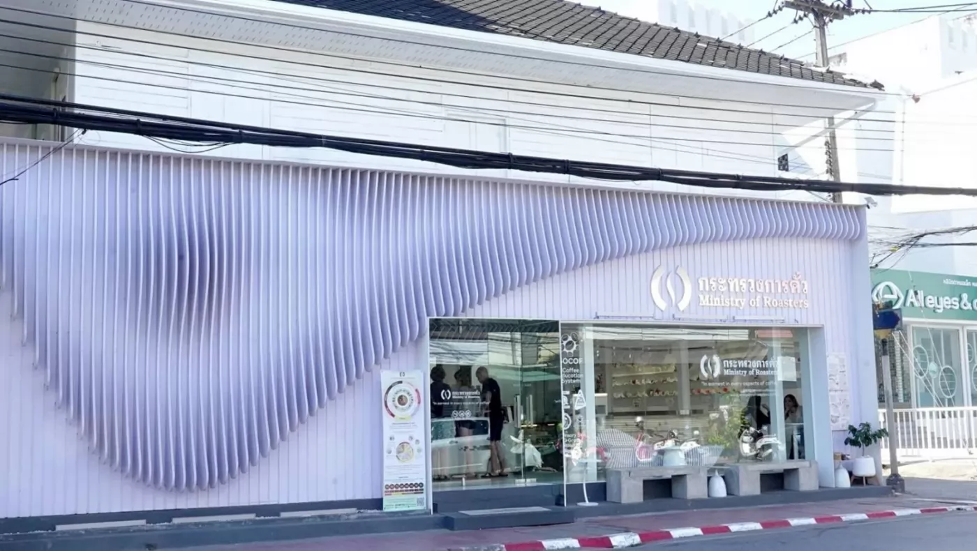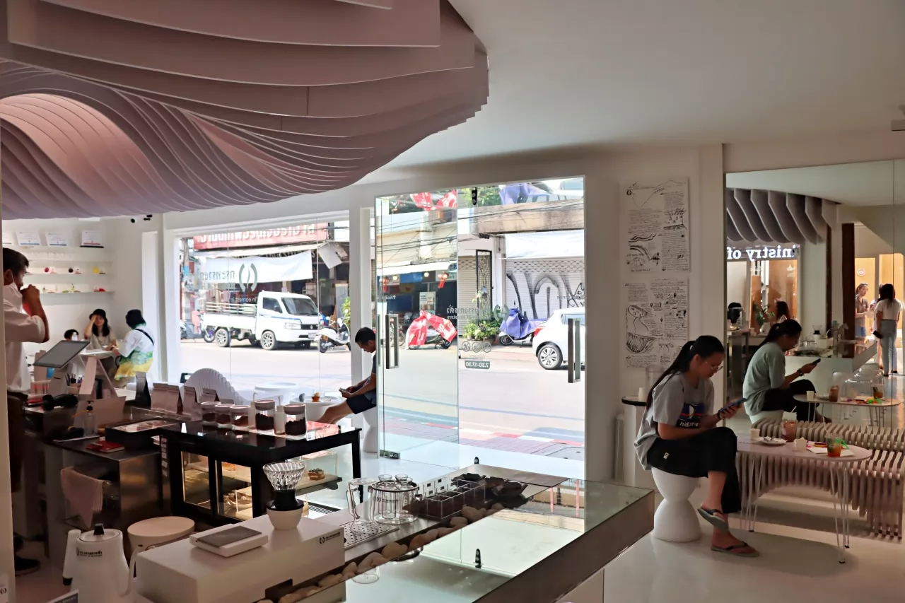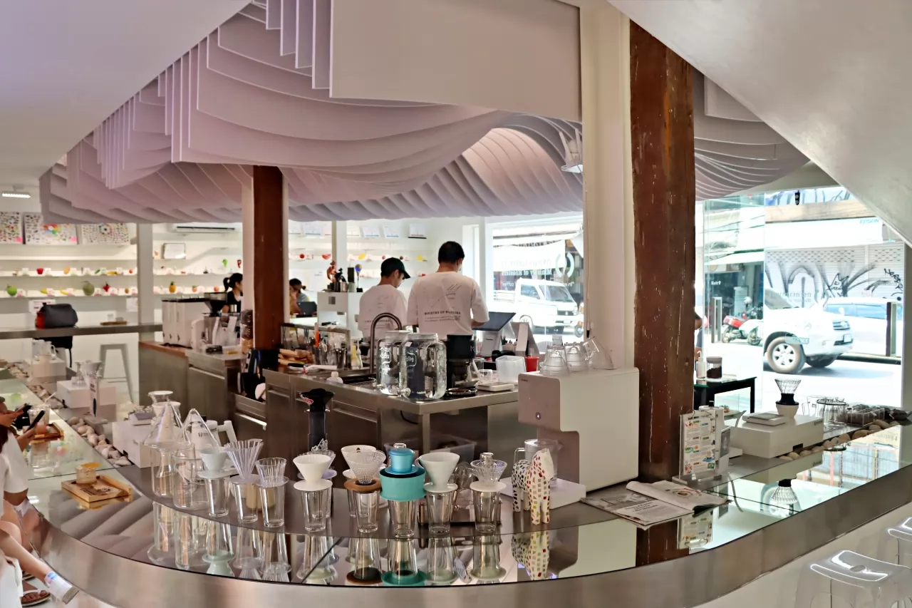 這家曼谷的名店,今年來清邁的老街區開新分店,專注於咖啡愛好者和優質咖啡產品。店負責人O先生,以MoR(Ministry of Roasters/烘焙部)Makes Sense為理念進行設計,專注於為顧客提供味覺、嗅覺、聲音和觸覺這5種感官的咖啡體驗,使得立面呈現在我們眼前波浪圖商店和安裝在商店天花板上的,都是有意義的!這意味著咖啡烘焙的每個階段中—溫度、時間和能量的變化。