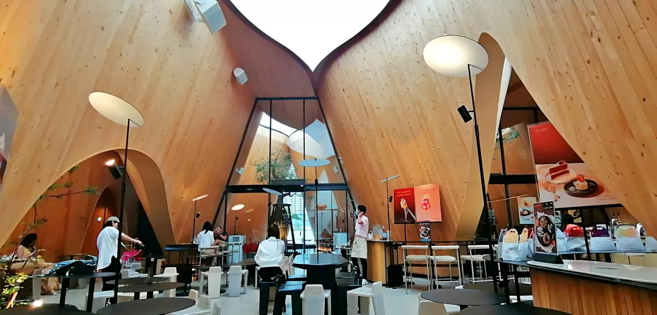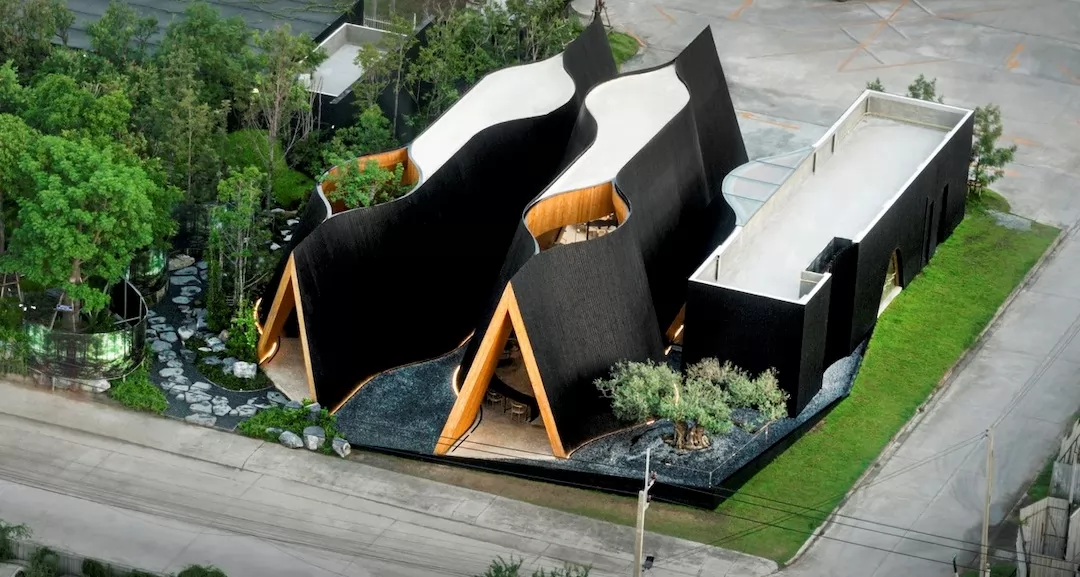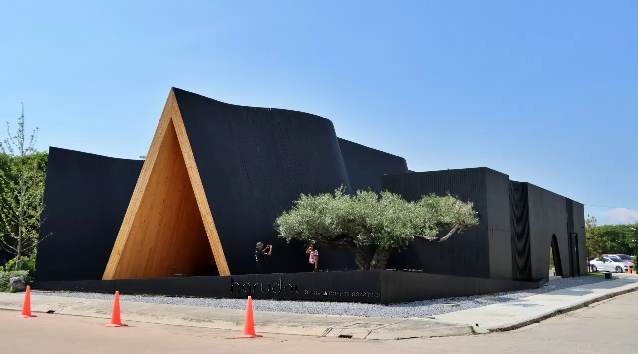 2023年NANA Coffee Roasters 在春武里(Chon Buri)與經營植物生意的地主合作,融合雙方鮮明的特色,交由IDIN Architects來打造 Harudot by Nana Coffee Roasters分店,黑色山形外觀令人一眼難忘。