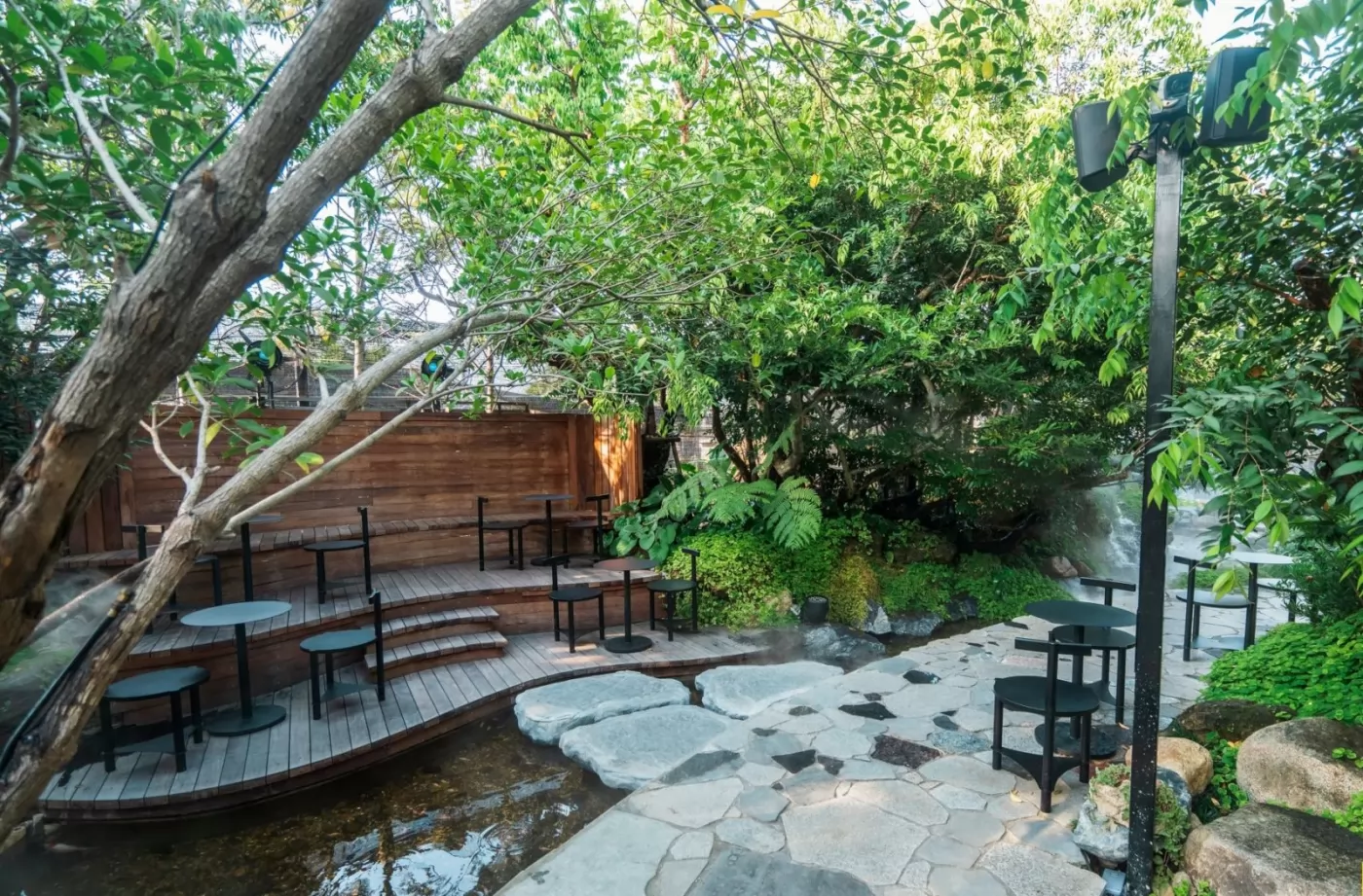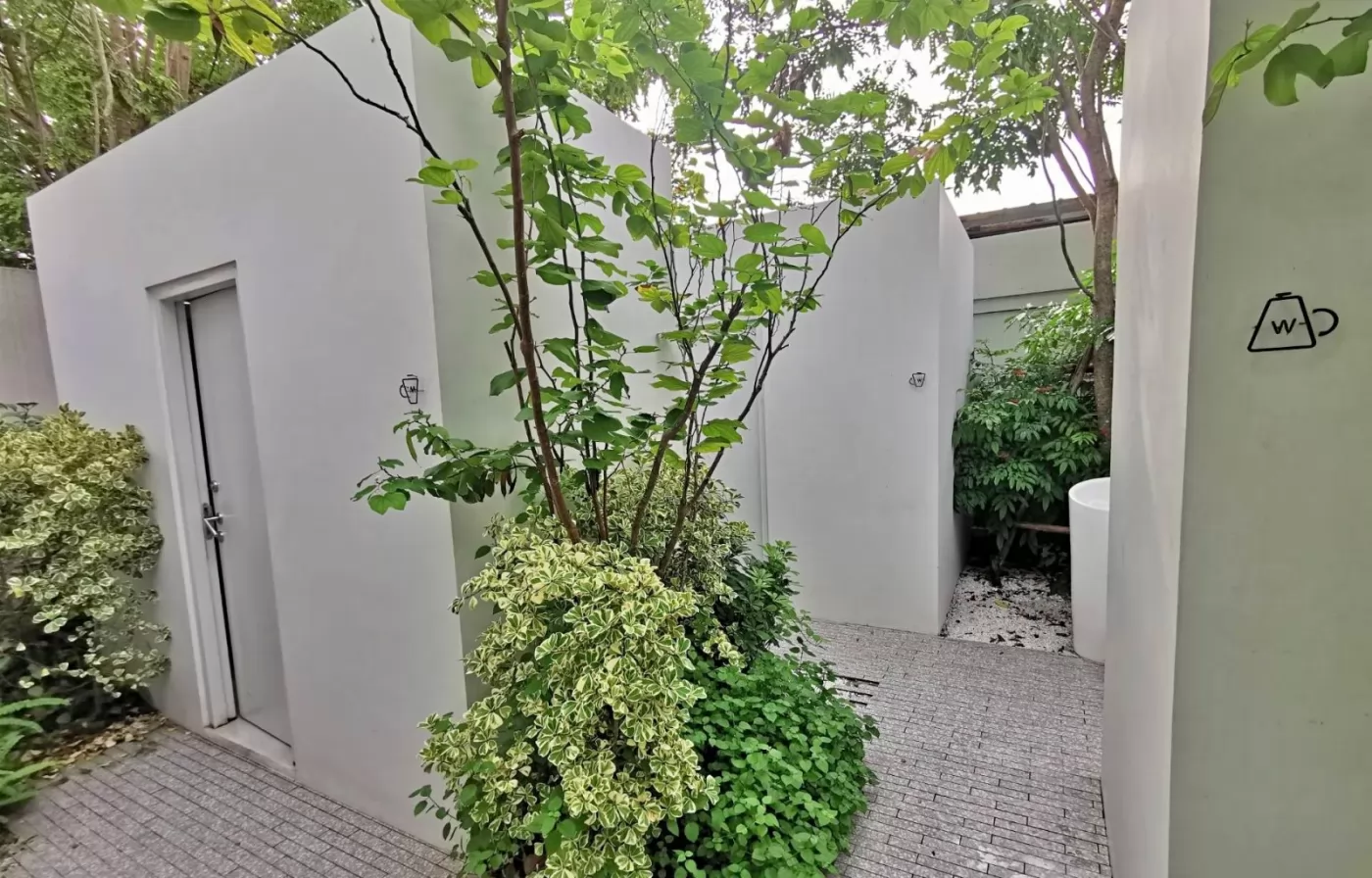 洗手間隱藏在樹木之間,提供使用者更高的隱私。