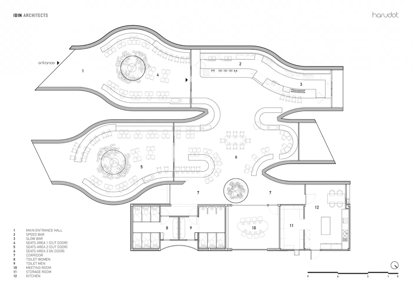 為更符合人們的走動習慣,建築物巧妙區分為不同場域,像是吧台、座位區、休息區、會議空間與洗手間。