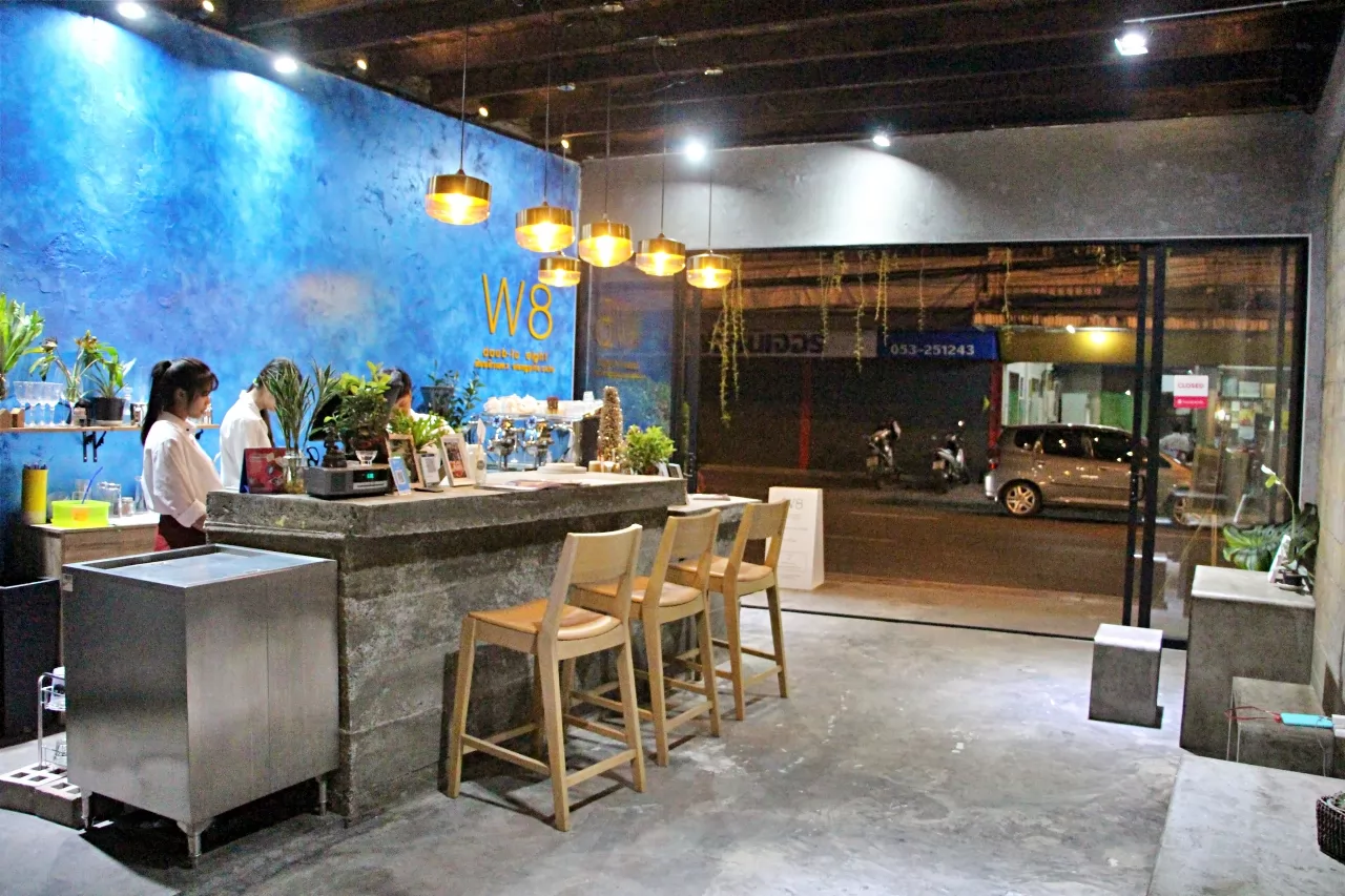 W8 x viangpha是別緻復古風格的咖啡店。店內、外綠植被成蔭,氣氛濃厚。