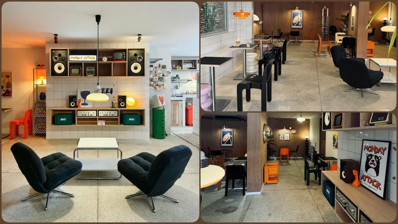 店內用明亮的藍、橘色做為主調,以手繪插畫與霓虹燈裝飾,獨創的可愛兔子做為品牌LOGO,卡通人物出現在店內各個角落,既復古又現代,十分可愛,店內和店外都很好拍!