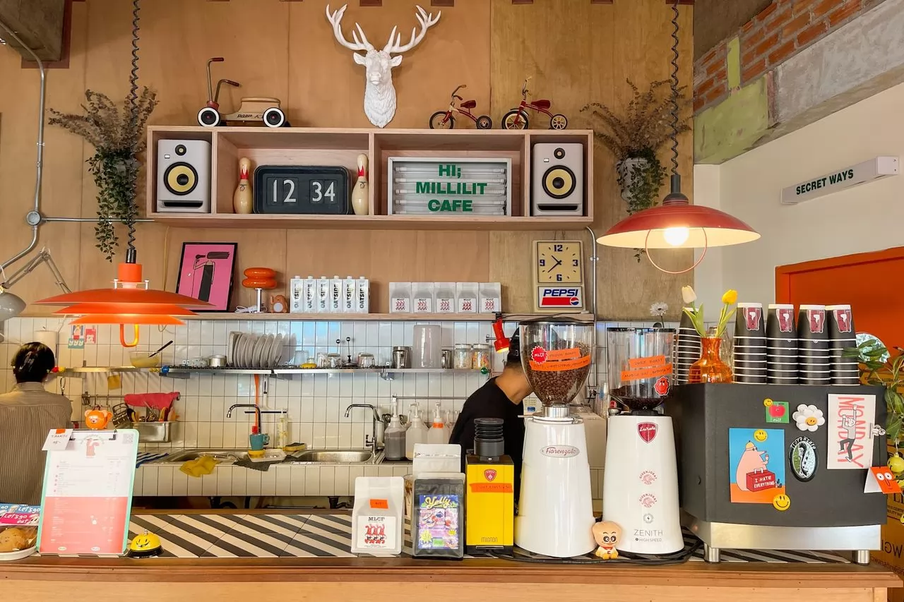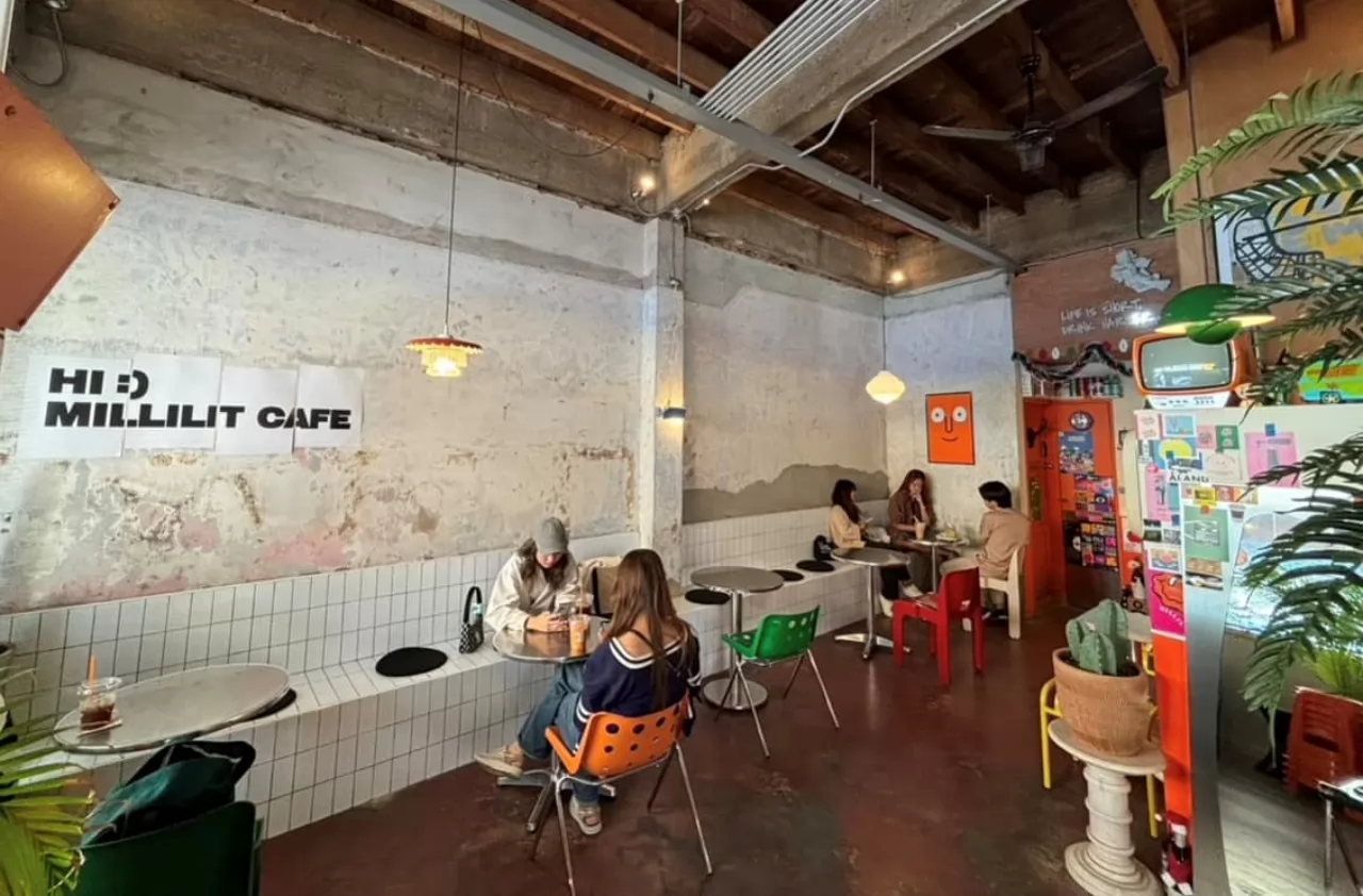 Millilit Cafe走的是復古活潑多彩的童趣風格,從外觀到內部裝潢滿滿巧思,一點韓式一點美式,獨特的Y2K風格,迅速成為清邁喜愛咖啡的必訪之地。