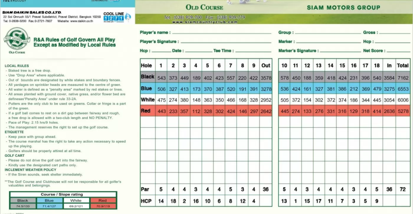 有興趣來Siam Country Club Old Course打球的朋友,透過奇威旅運貿易公司(陳聯漢kamthon C.手機:0894458878;或加Line:arhone、微信:arhonechen52接洽)可以拿到比球場公佈費用更優惠的價格,同時還能搭配專車接送、代訂住宿或是周邊旅遊的服務。