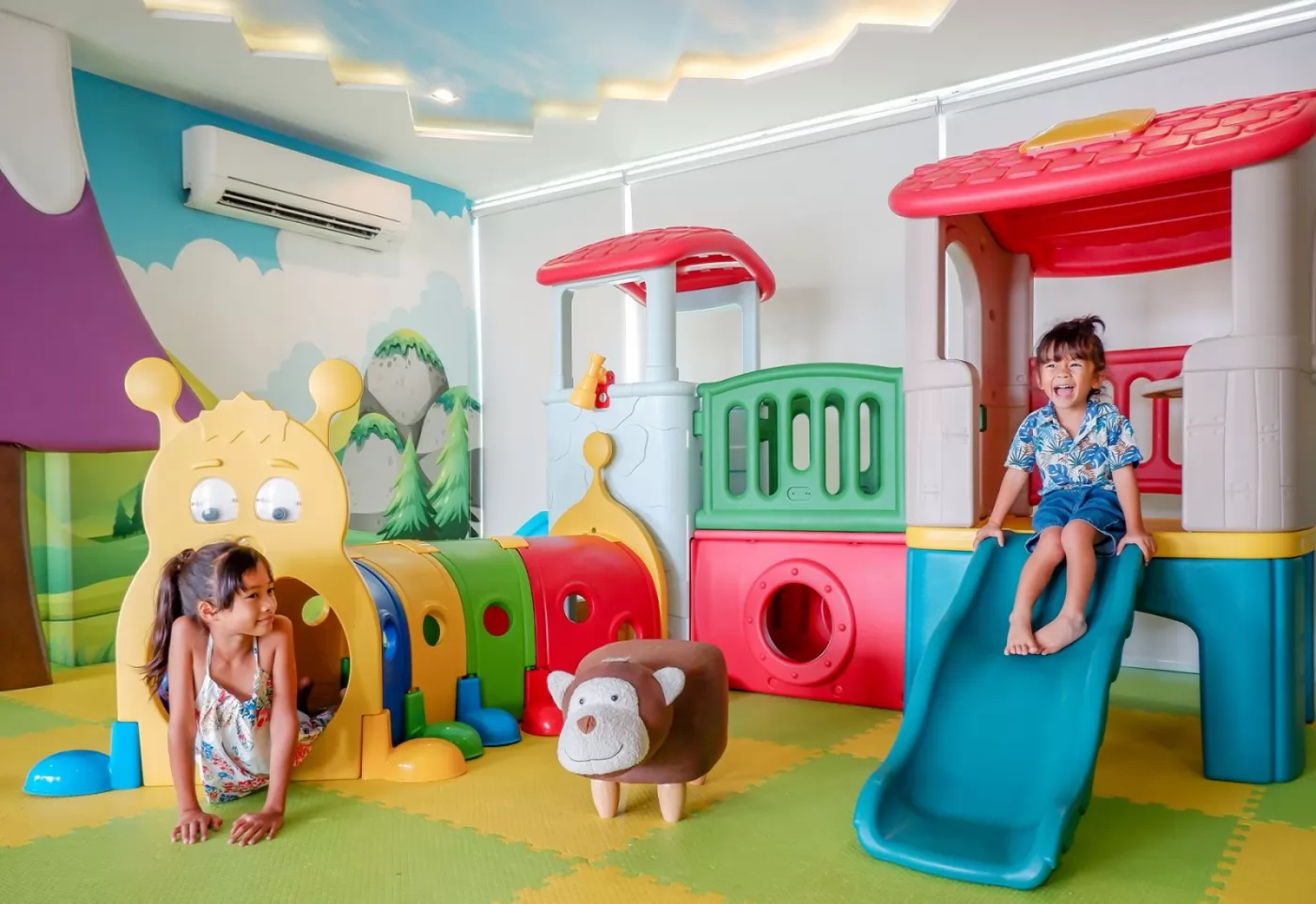 兒童遊戲室:同樣在3樓,室內有冷氣,各種小型溜滑梯、玩具,地上還有鋪上軟墊,小朋友在這裡玩很安全,非常適合親子旅遊。