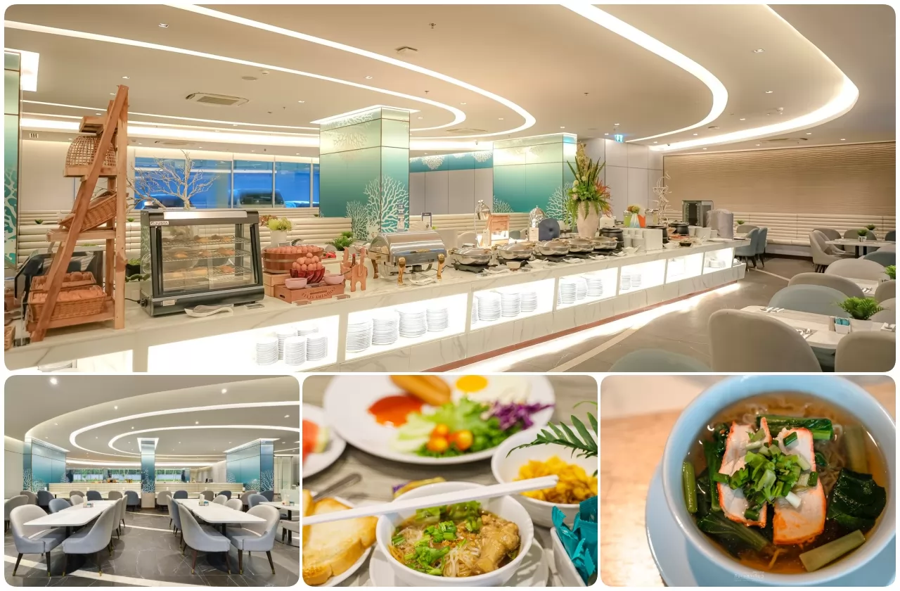 早餐:住房可選是否含早餐(加400銖), Buffet的菜色超豐富,有中式、泰式、西式料理,沙拉、各式蛋料理、蔬菜、麵食、炸物、點心、飲料、咖啡等應有盡有。The Sea餐廳,提供有多種食物和飲料可供選擇的午、晚餐,飯店保證從第一口到最後一口的美味!