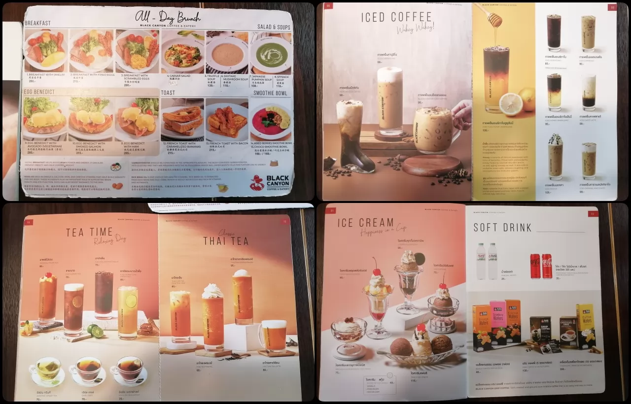 這裡的招牌是Black Canyon熱美式(80-1105銖),咖啡很美味,濃烈而醇厚,還配有商店提供的免費餅乾。另外也有甜點和飲料,種類豐富。