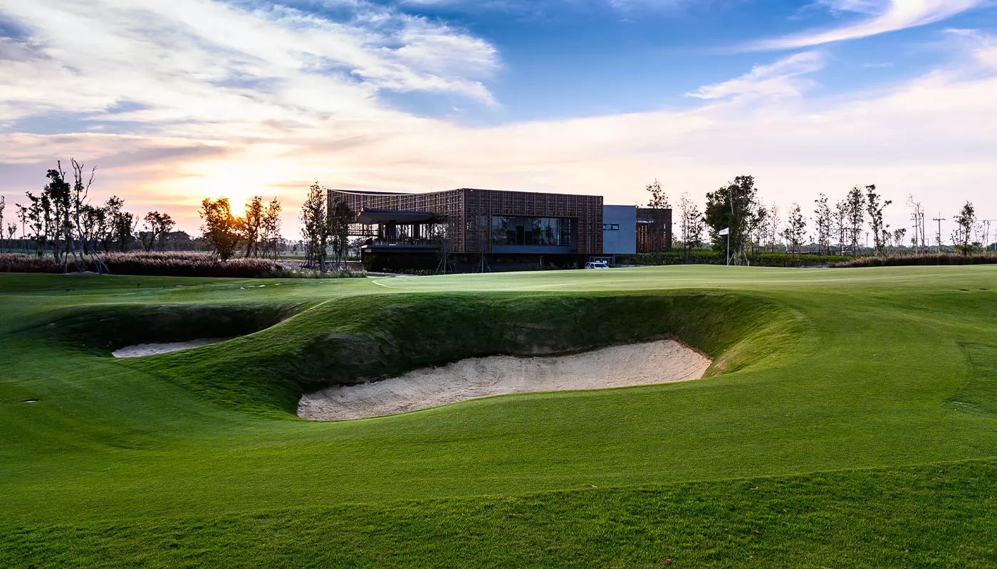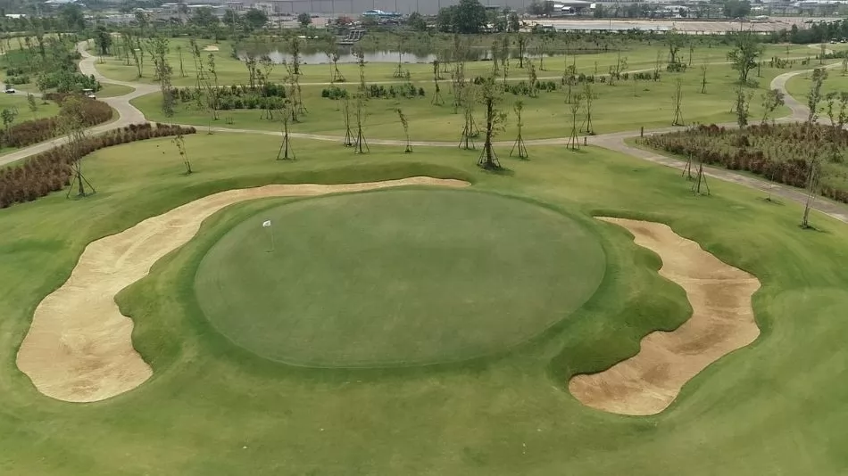 最長7,250 碼、18 洞、標準72桿, 由 Toby Cobb 在為 Coore & Crenshaw 和 Tom Doak 工作後的第一個設計項目,希望將這座曼谷新地標顯得與眾不同。