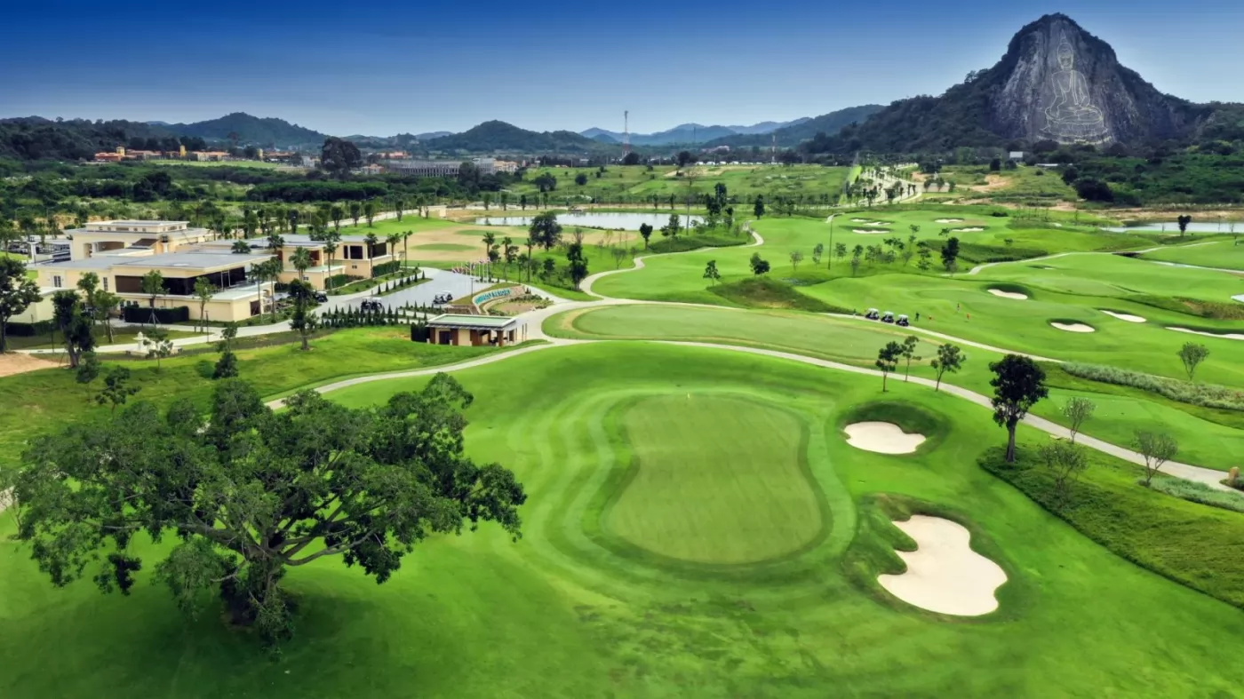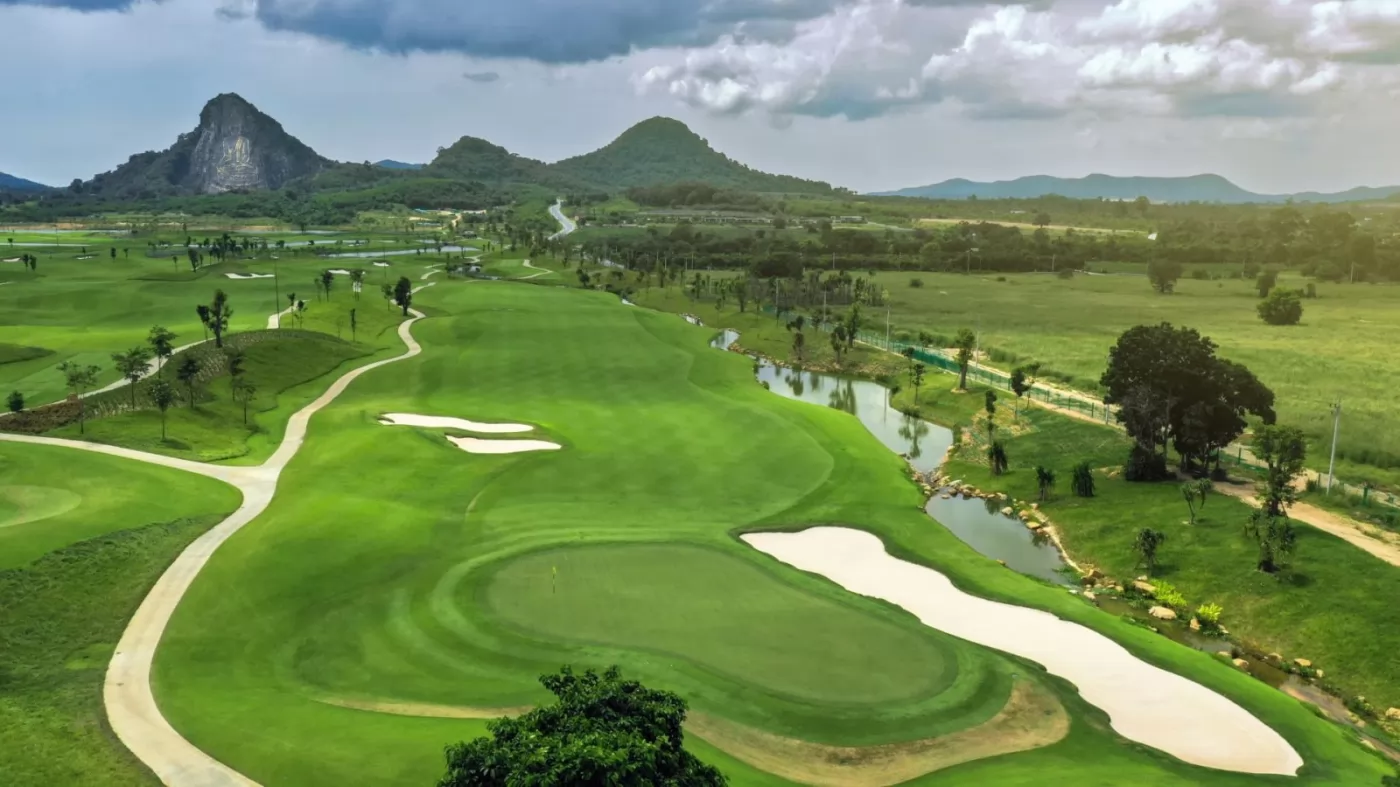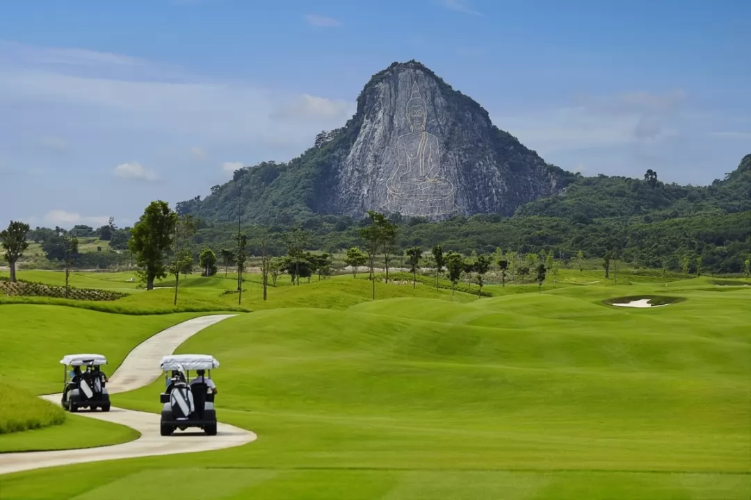 很多人聽說過 Chee Chan,可能是因為山面懸崖上雕刻的金色七珍佛像(Khao Chee Chan),110公尺高,被認為是世界上最大的佛像。1996年,為了慶祝泰九世皇登基50周年,佛陀被正式命名為Phra Phuttha Maha Wachira Uttamopat Satsada,象徵和平與寧靜,如今是知名的景點,這個高球場就在佛像的下方,其視覺效果令人驚嘆,同時也是一項高爾夫挑戰。