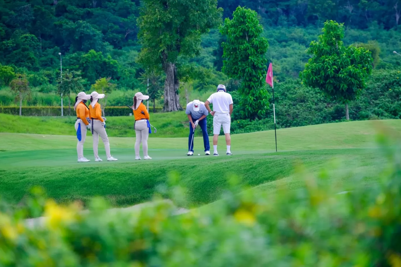 果嶺從後向前傾斜,一個上坡推桿應該可以抓下小鳥,但2推拿下標準桿就算很不錯的成績,特別是同組有人受困沙坑打出大數字桿數臭臉離開時。