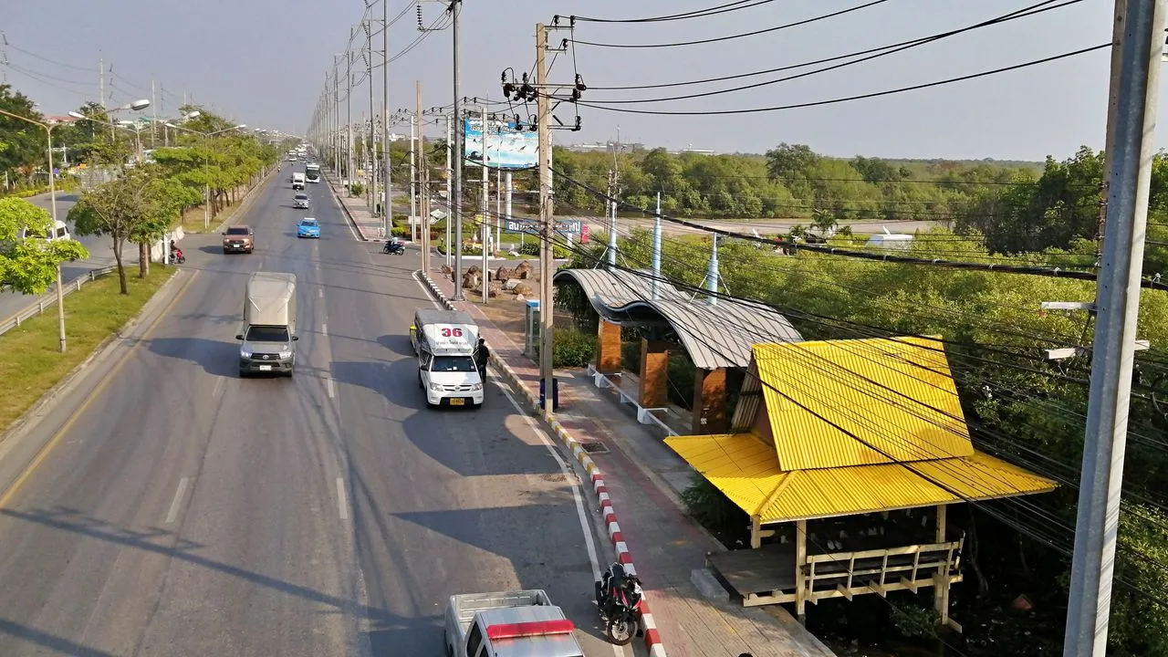 搭36號宋條車,來到Bang Pu Post Office前面下車,過天橋到對面步行,或是從Kheha站搭TAXI到Afternoon Bangpu。