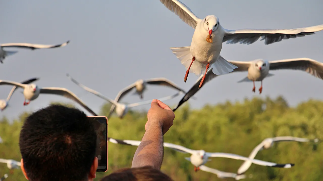 因為網紅的照片,來邦浦海濱的遊客,一定要拍張餵食海鷗的照片。