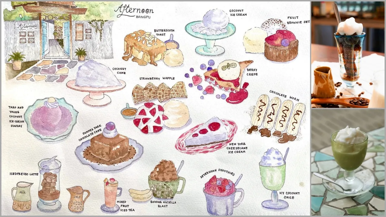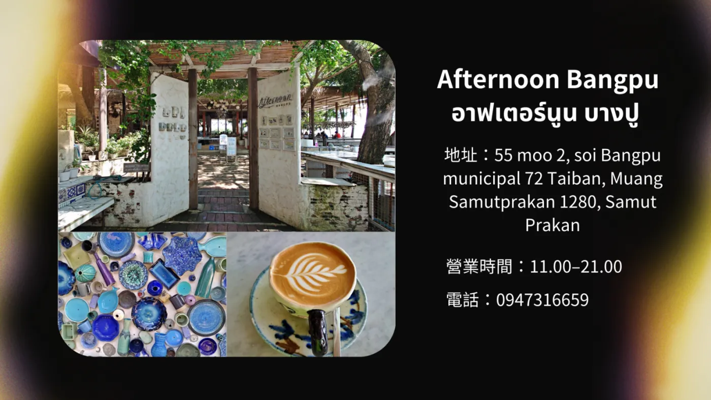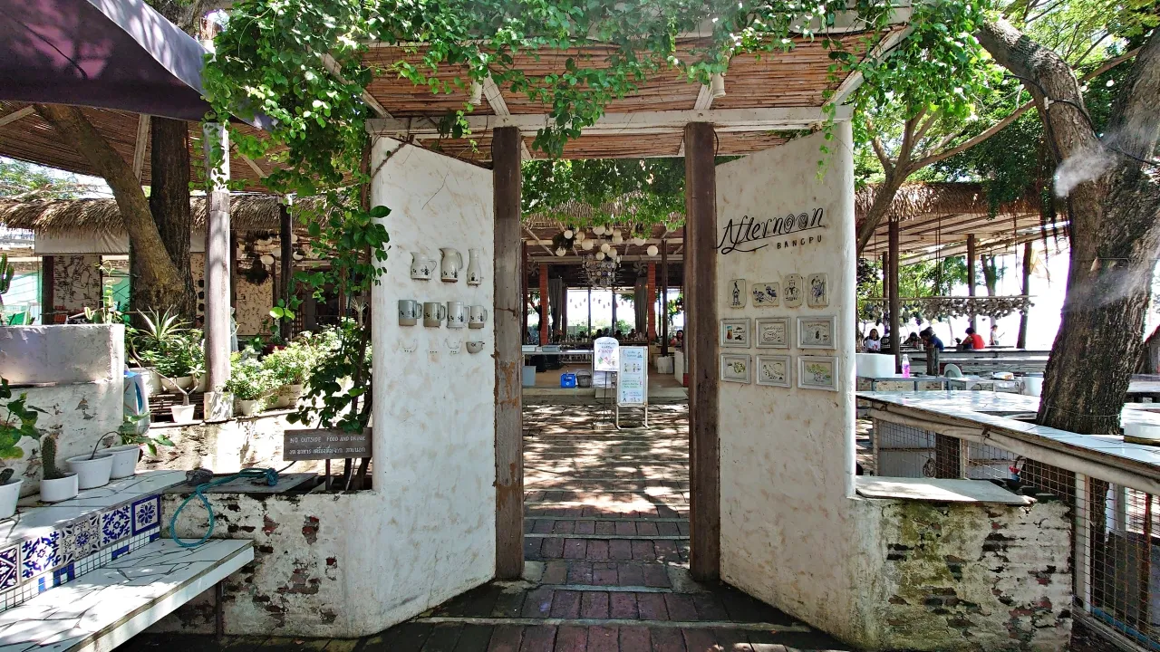 位於邦浦海濱的Afternoon Bangpu,是一家迷人的咖啡店,寬敞的區域提供充足的座位,配有陶瓷吊飾和大量盆栽,擁有藝術氛圍,讓你在享受咖啡和美食的同時也能感受到清新的海風,享受輕鬆的悠閒時光。