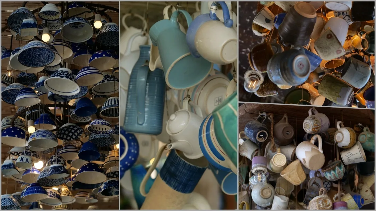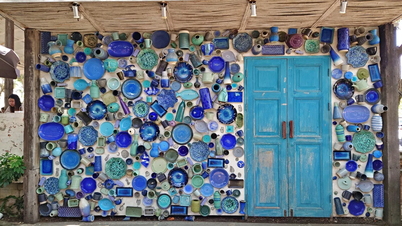 側邊牆用陶瓷和玻璃製作華麗的盤、瓶,嵌入的牆面,是必打卡拍照的熱點。