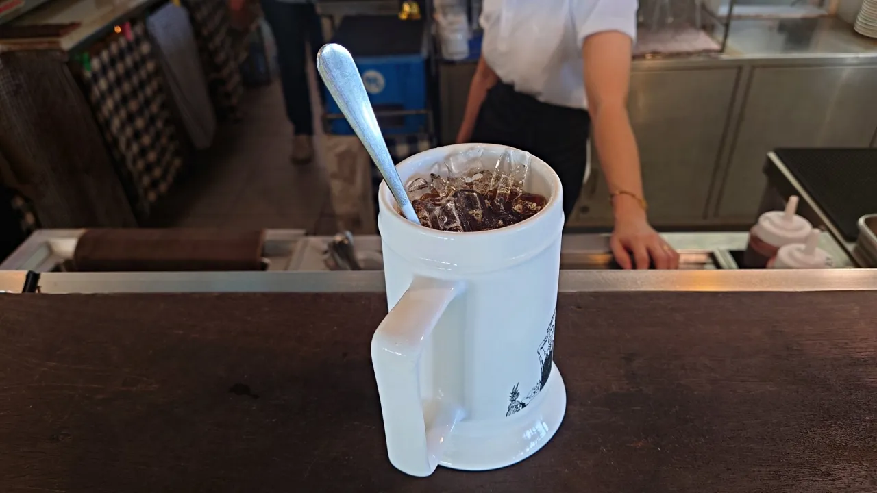 店裡沒有空調,但有電風扇和海風解熱,不拍照也不會無聊,可以悠閒看著貨輪進進出出湄南河,就值了!