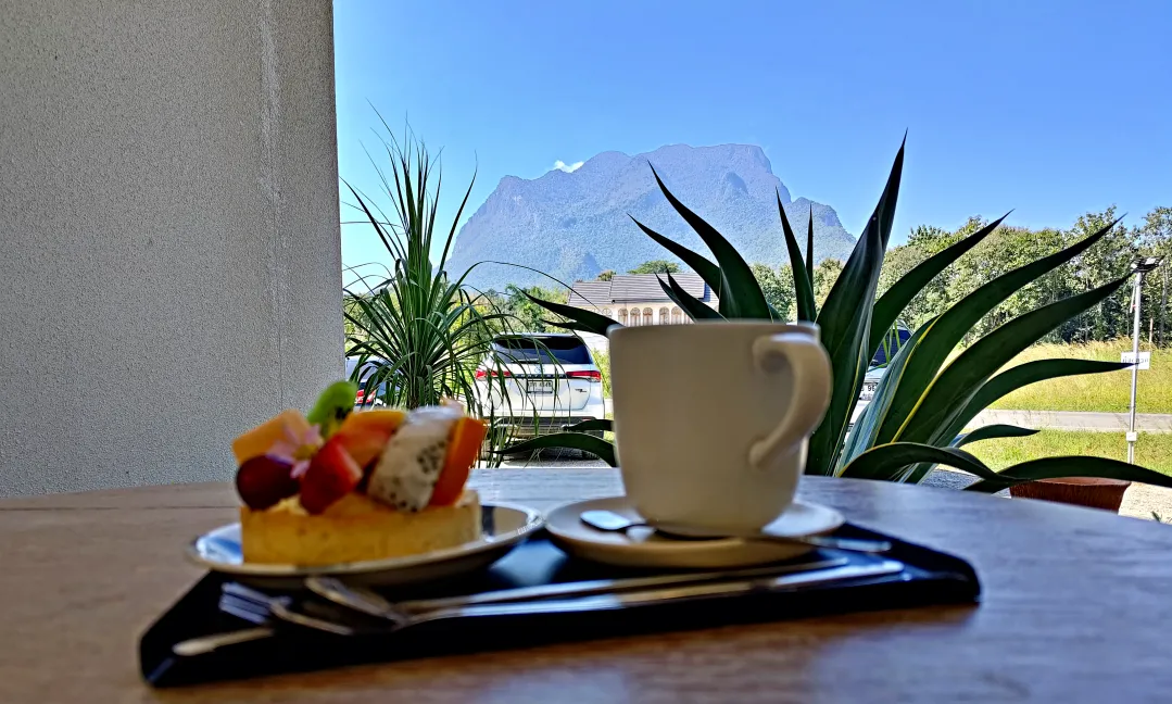 來到清島山的腳下公路旁, Bhagava Cafe & Cuisine享用咖啡和甜點。