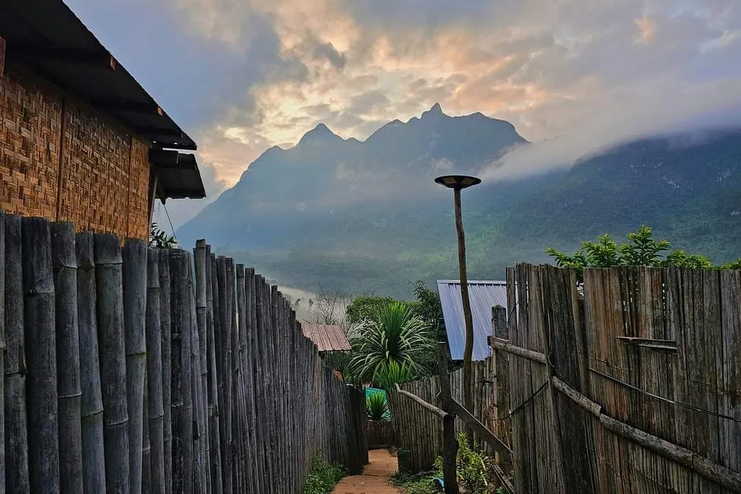 住宿前面可以停車,風景很好,住宿乾淨,住獨棟的兩人帳篷,公共浴廁,每人650泰銖(村裡的公定價),包含當天晚餐和隔日的早餐,非常值得。