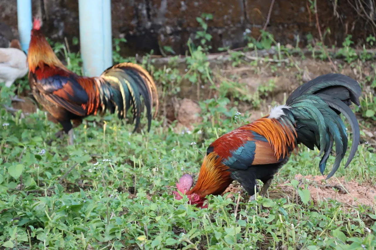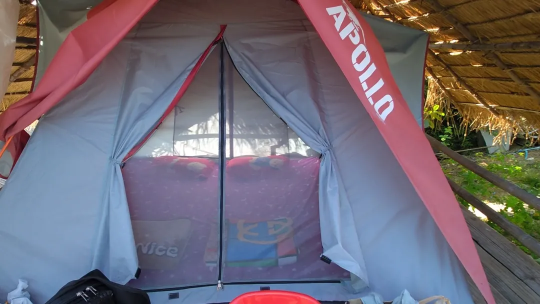 高架帳篷下,有放養的山雞跑來跑去,凌晨 3 點公雞就啼叫,很難入睡。