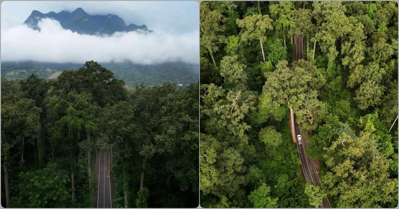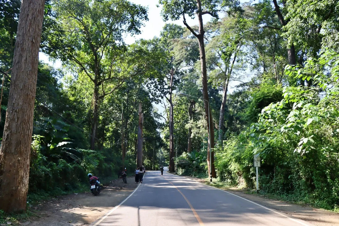通往拉弄清島的公路,一定要停下來拍照的另一個地標就是大樹段(ถนนต้นยาง),路兩旁排列著的高大橡膠樹,長約700米。