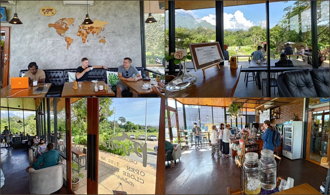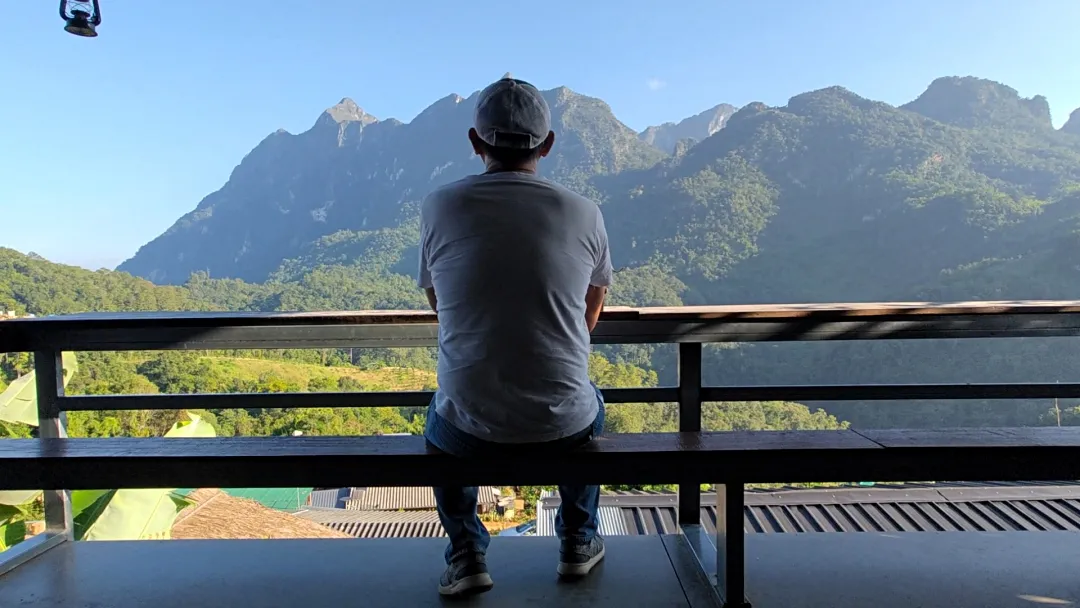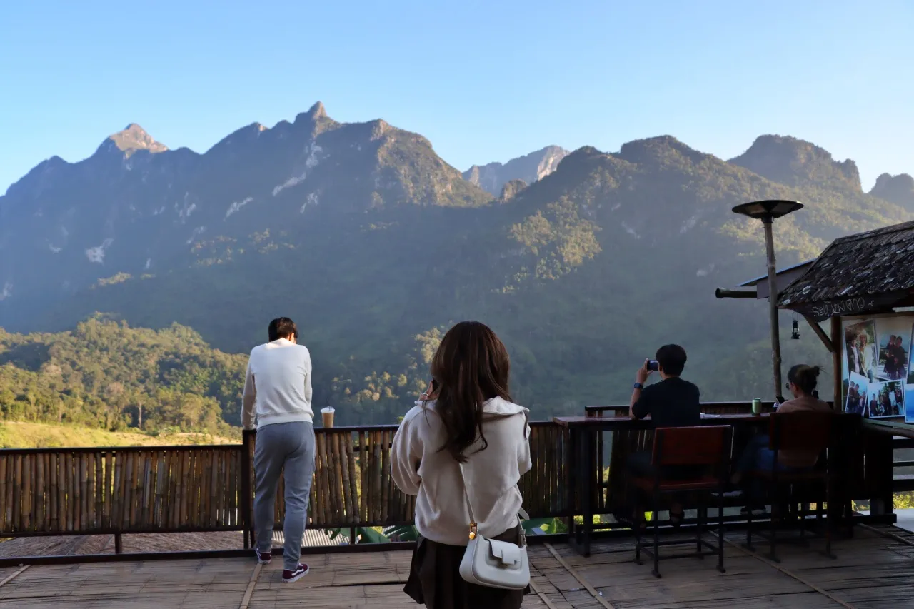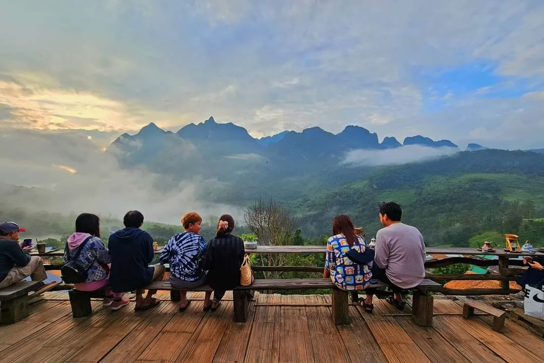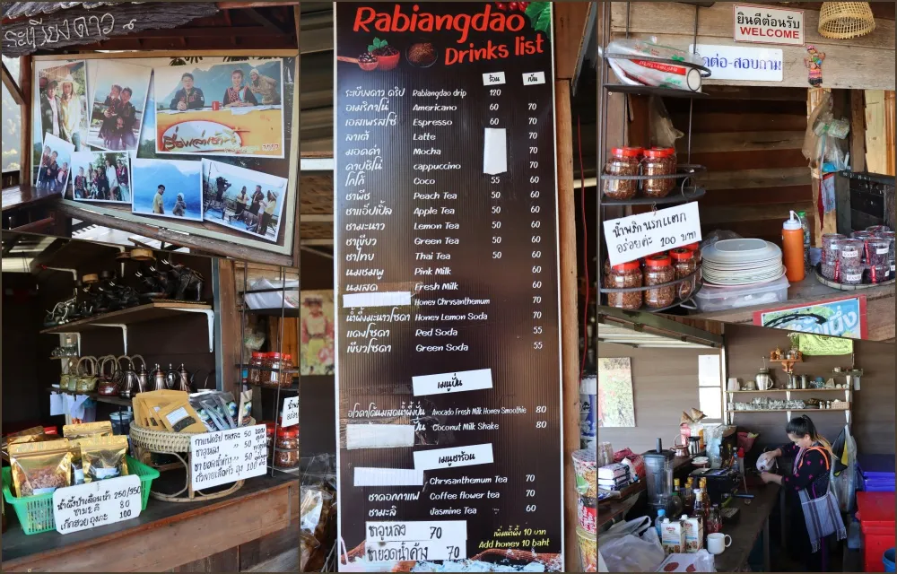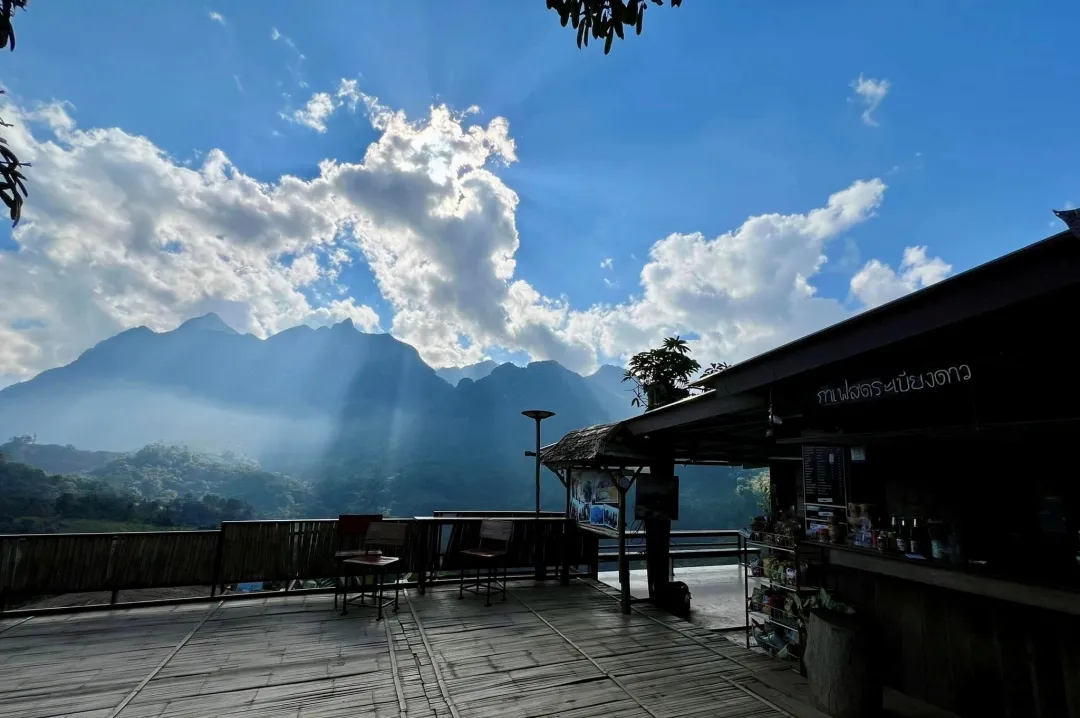 搞定住宿,接著往前走下Rabieng Dao(บ้านระเบียงดาว),這裡是最有名的喝咖啡地方,大多數人來旅遊的目的,就是坐下來近距離欣賞清道山的景色。
